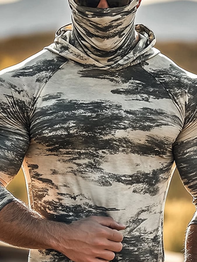 Men's Outdoor Sun Protection Breathable Cool Hooded Sun Protection Long Sleeve Top