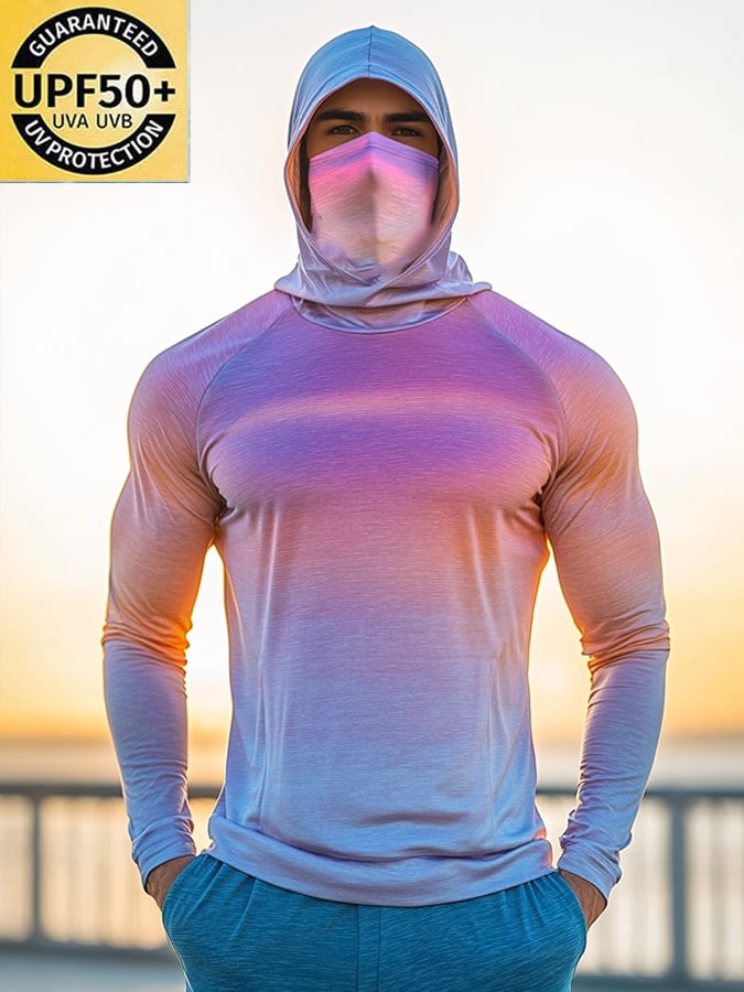 Men's Outdoor Sun Protection Breathable Cool Hooded Sun Protection Long Sleeve Top