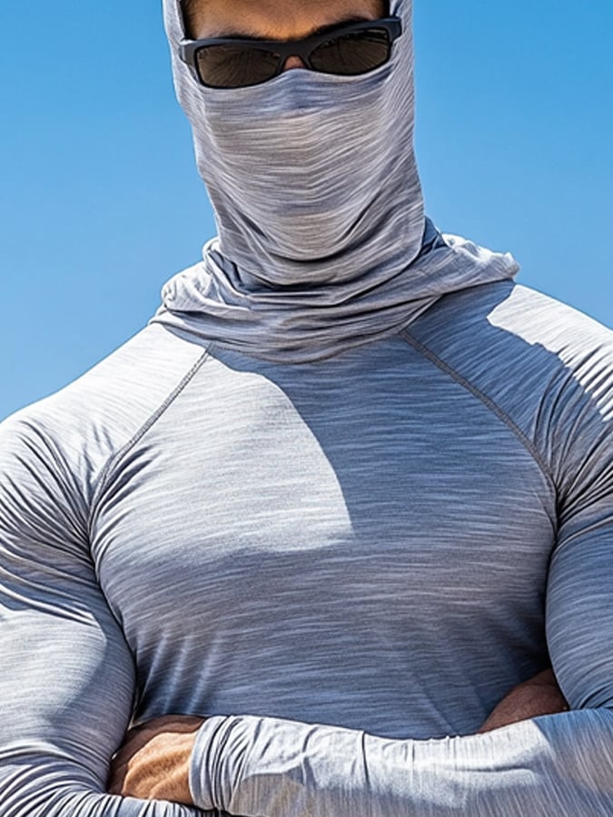 Men's Outdoor Sun Protection Breathable Cool Hooded Sun Protection Long-Sleeved Top