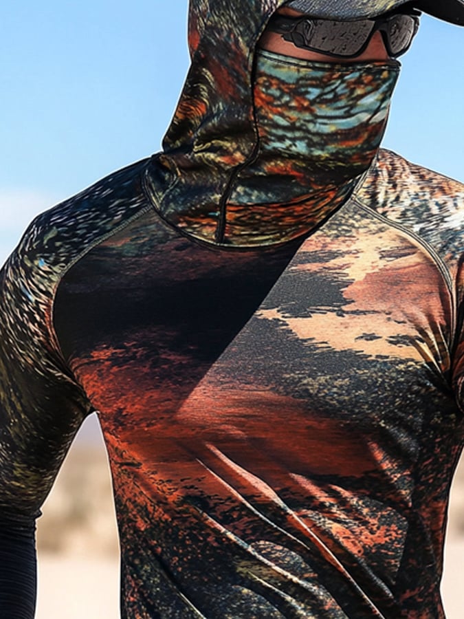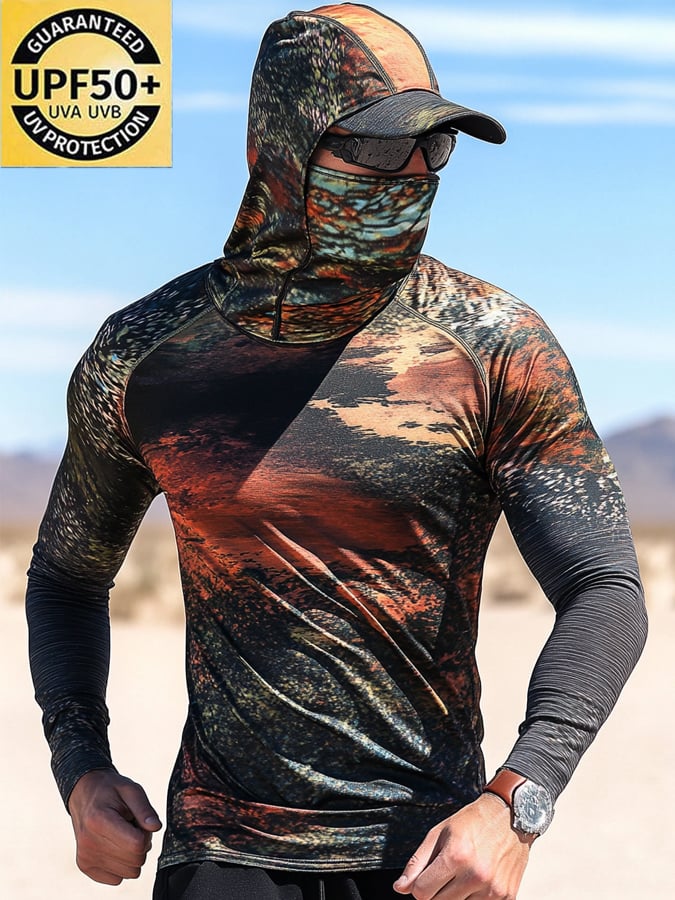 Men's Outdoor Sun Protection Breathable Cool Hooded Sun Protection Long-Sleeved Top