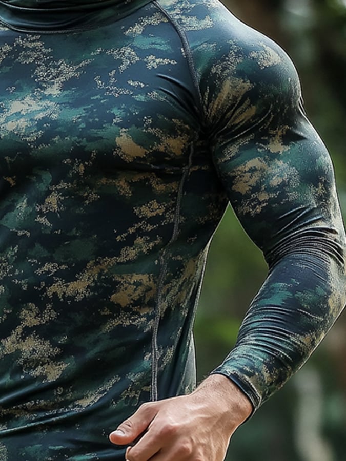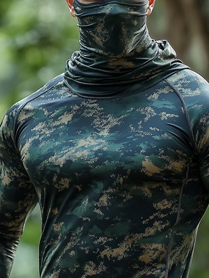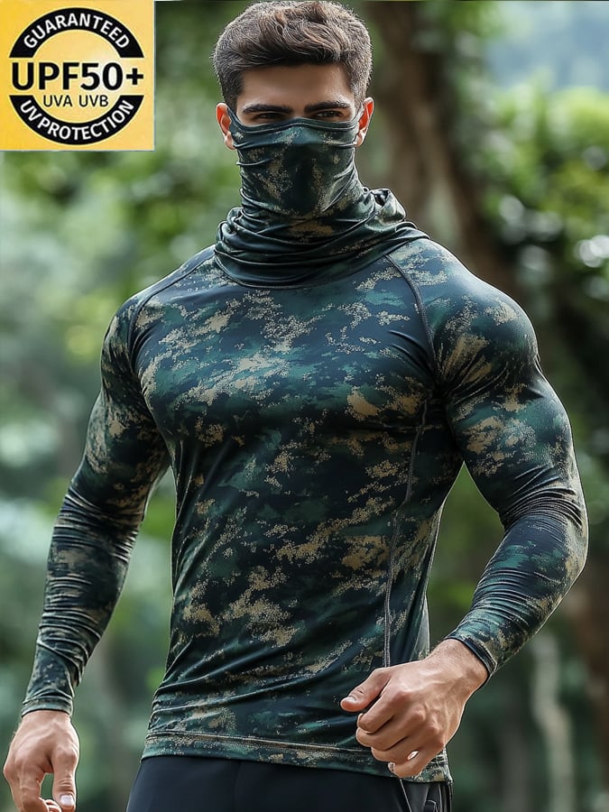 Men's Outdoor Sun Protection Breathable Cool Hunting Camouflage Mask Hooded Sun Protection Long-Sleeved Top