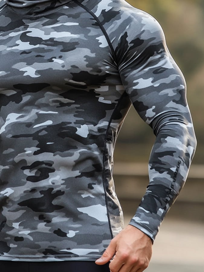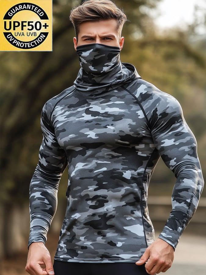 Men's Outdoor Sun Protection Breathable Cool Hunting Camouflage Mask Hooded Sun Protection Long-Sleeved Top