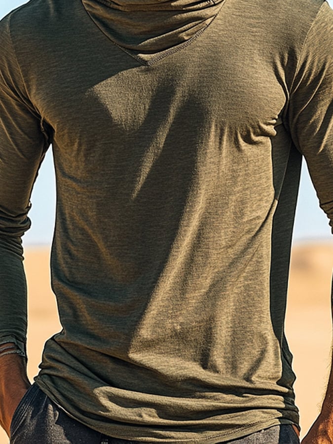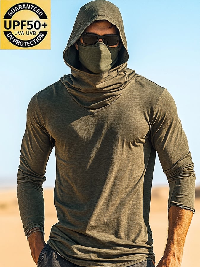 Men's Outdoor Sun Protection Breathable Cool Mask Hooded Sun Protection Long-Sleeved Top