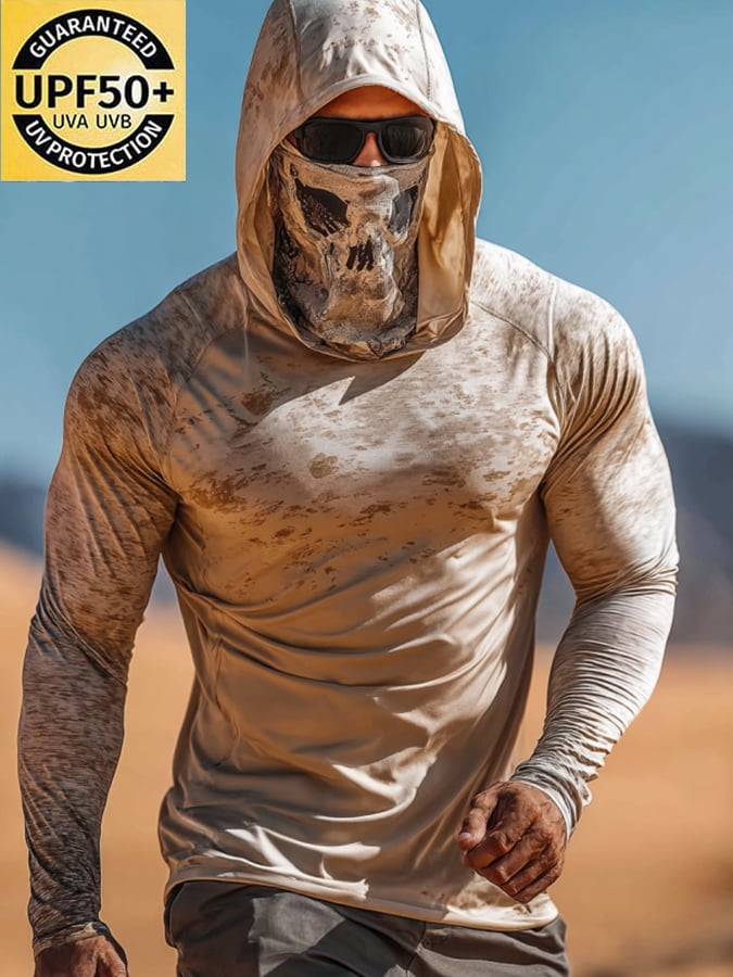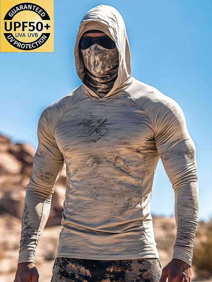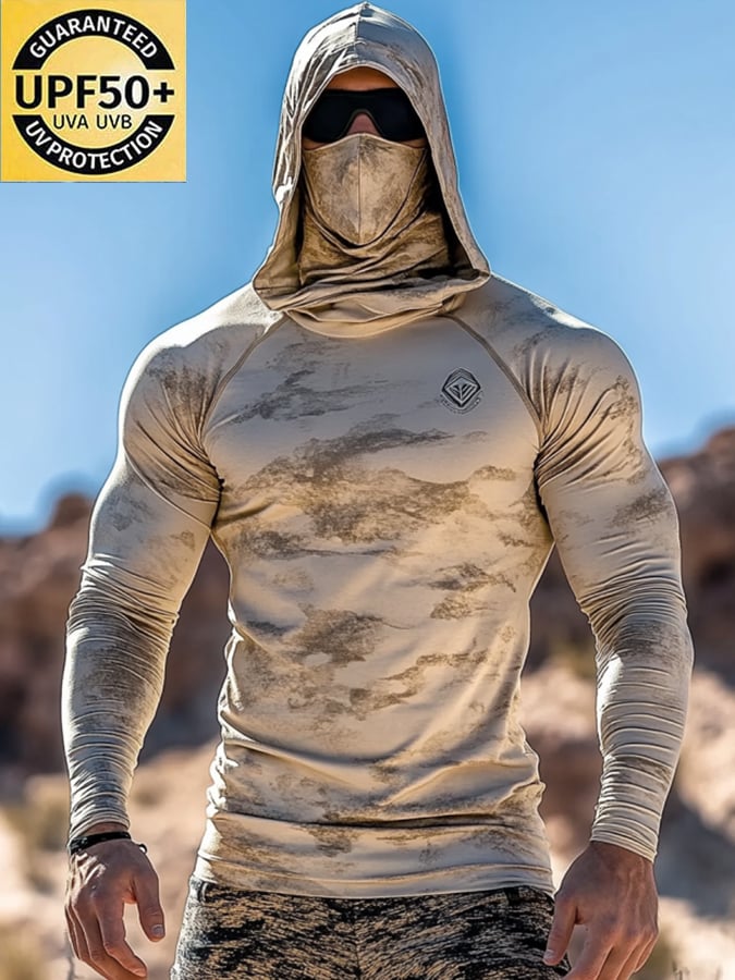 Men's Outdoor Sun Protection Breathable Cool Mask Hooded Sun Protection Long-Sleeved Top