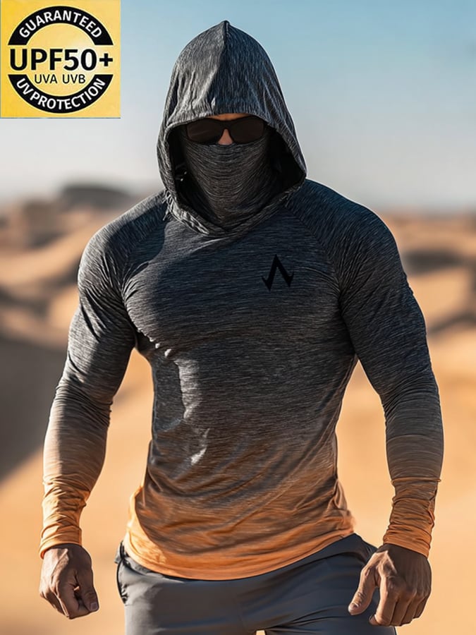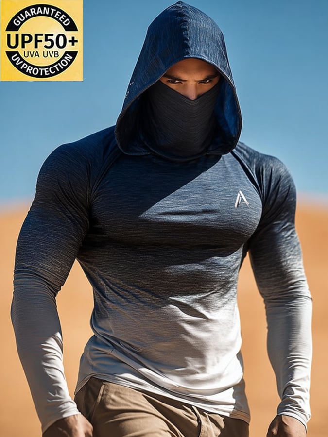 Men's Outdoor Sun Protection Breathable Cool Mask Hooded Sun Protection Long-Sleeved Top
