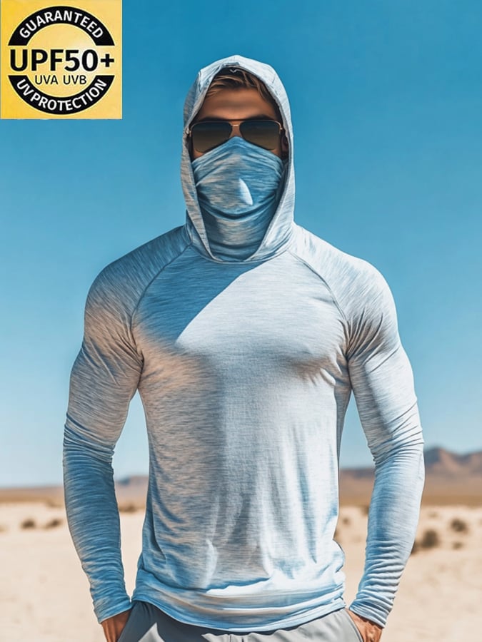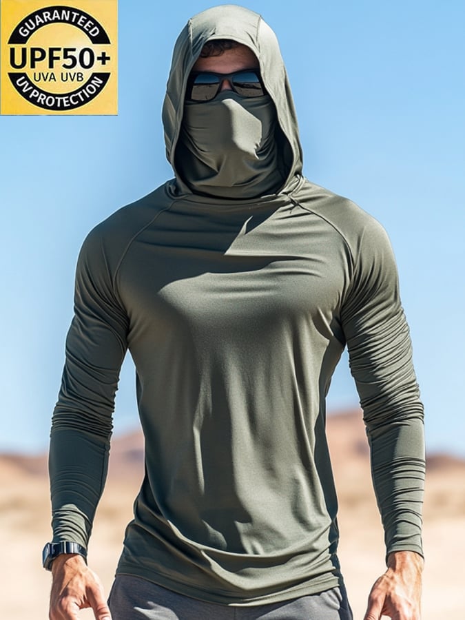 Men's Outdoor Sun Protection Breathable Cool Mask Hooded Sun Protection Long-Sleeved Top