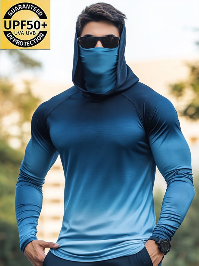 Men's Outdoor Sun Protection Breathable Cool Mask Hooded Sun Protection Long-Sleeved Top