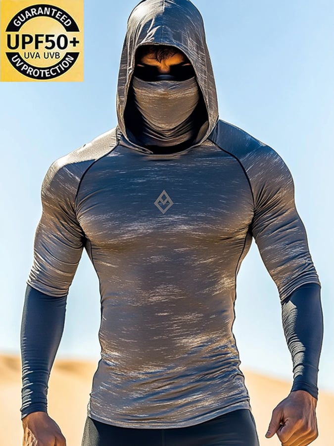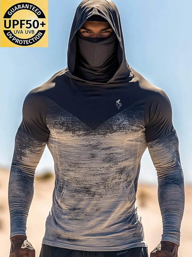 Men's Outdoor Sun Protection Breathable Cool Mask Hooded Sun Protection Long-Sleeved Top
