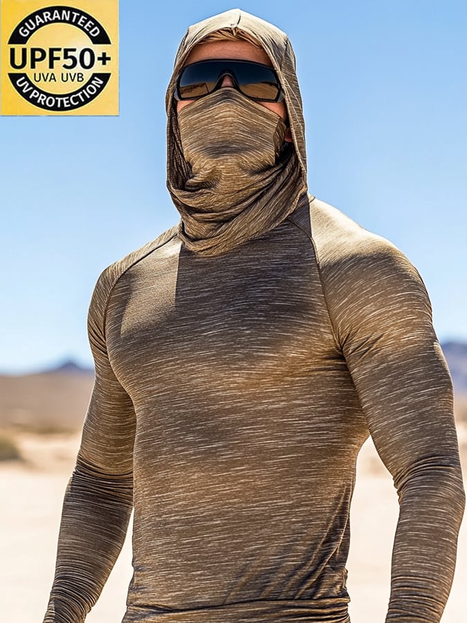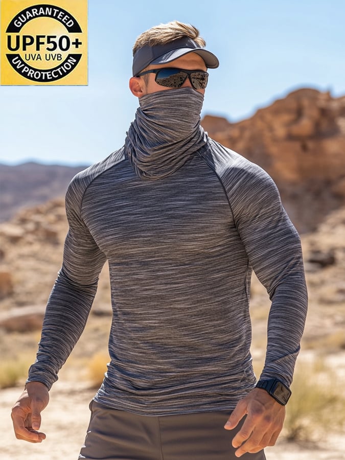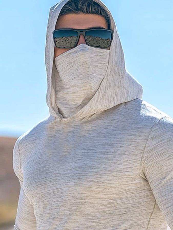 Men's Outdoor Sun Protection Breathable Cool Mask Hooded Sun Protection Long-Sleeved Top