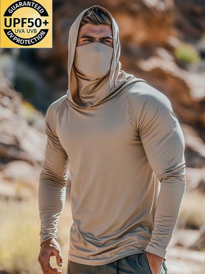 Men's Outdoor Sun Protection Breathable Cool Mask Hooded Sun Protection Long-Sleeved Top