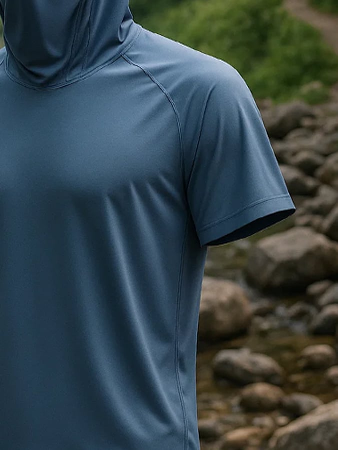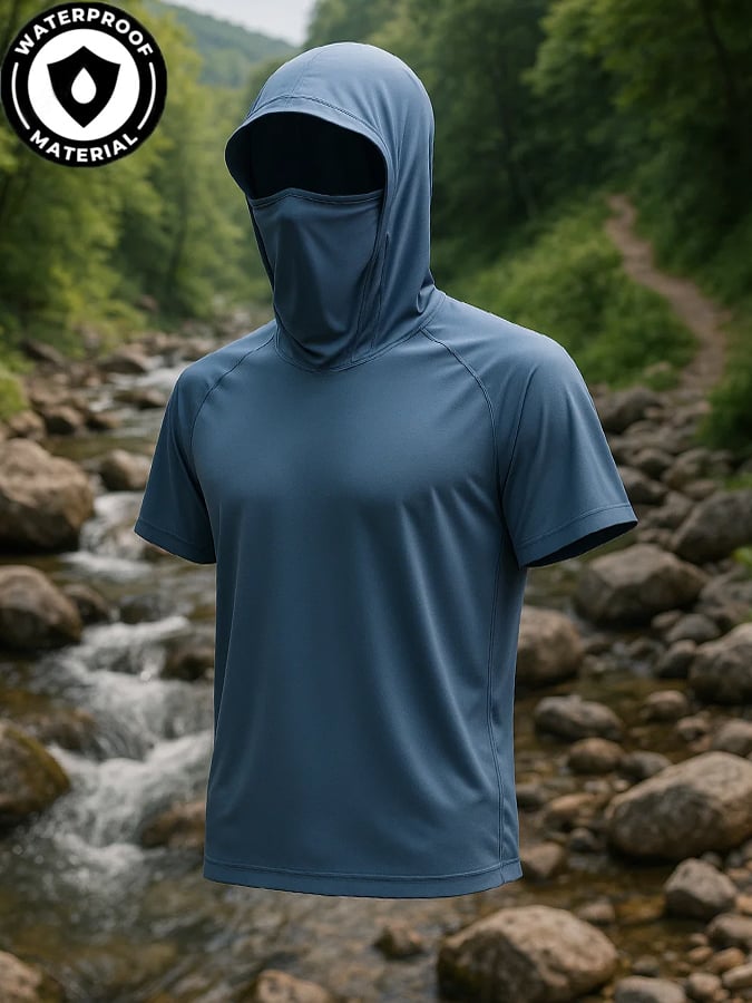 Men's Outdoor Sun Protection Breathable Cool Mask Hooded Sun Protection Short-Sleeved Top
