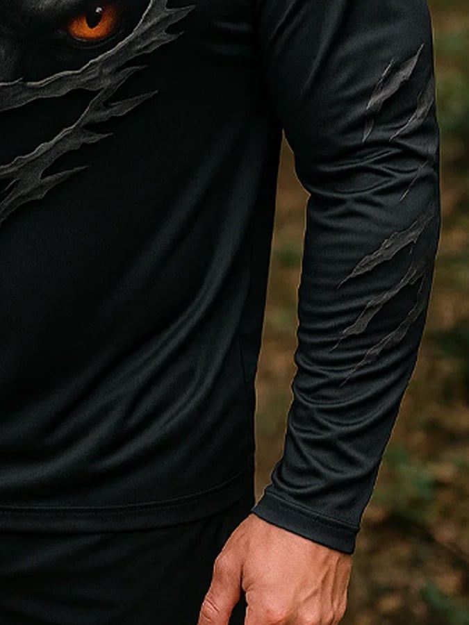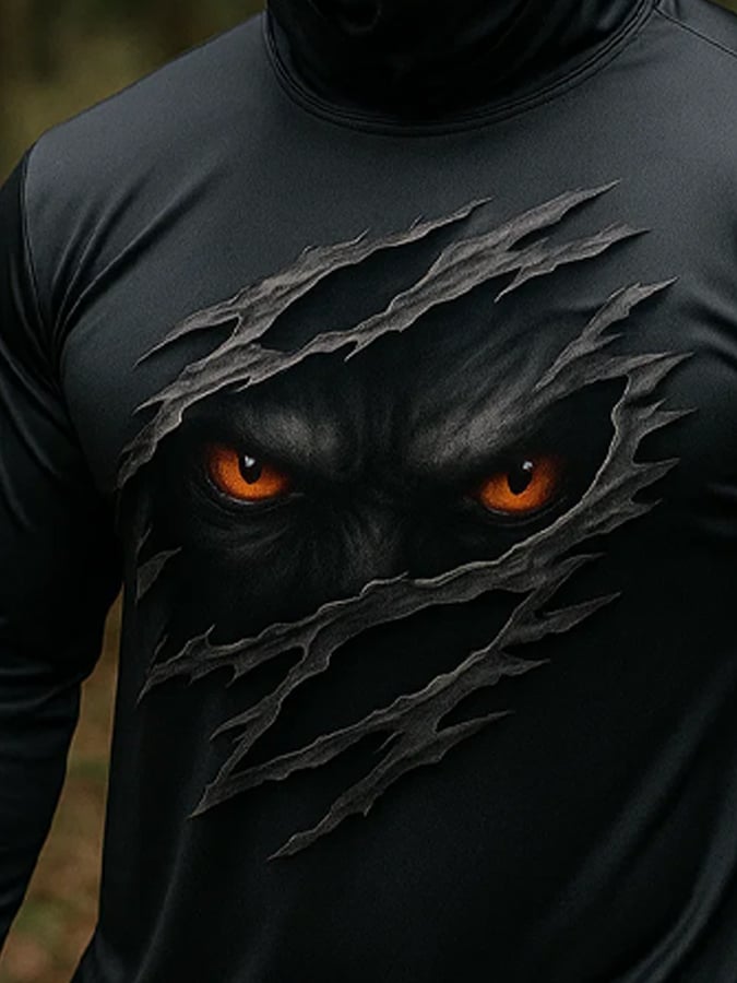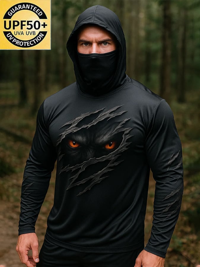 Men's Outdoor Sun Protection Breathable Cool Real 3D Printed Mask Hooded Sun Protection Long-Sleeved Top