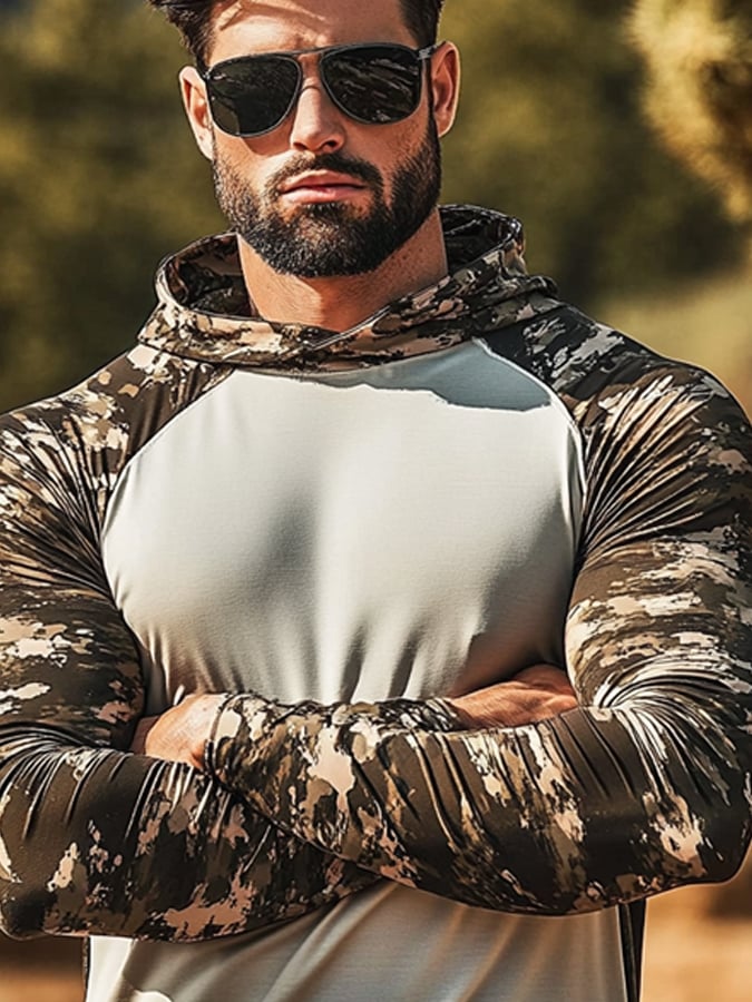 Men's Outdoor Sun Protection Cool Hooded Sun Protection Long Sleeve Top