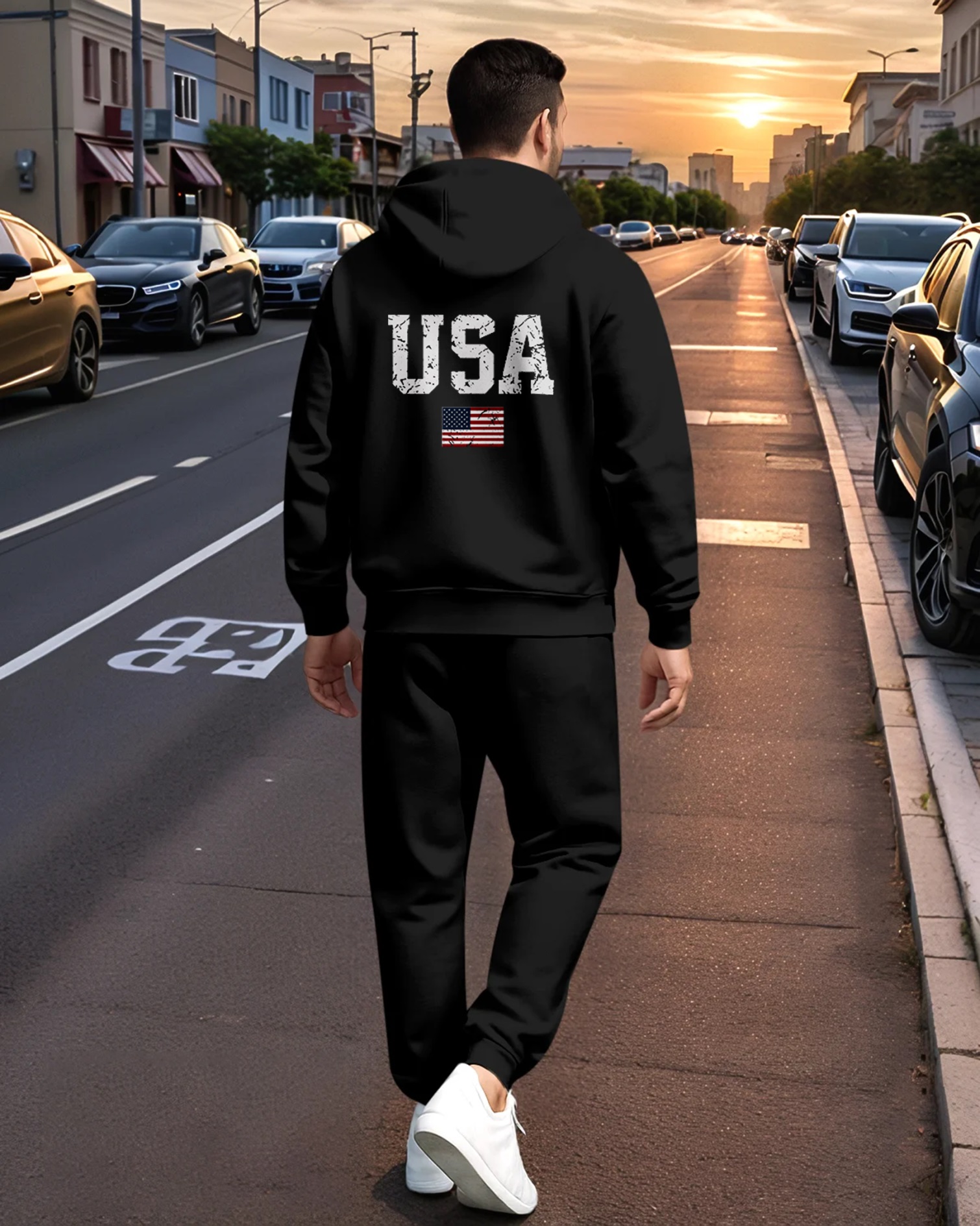 Men's Printed Hoodie And Drawstring Sweatpants Set 012