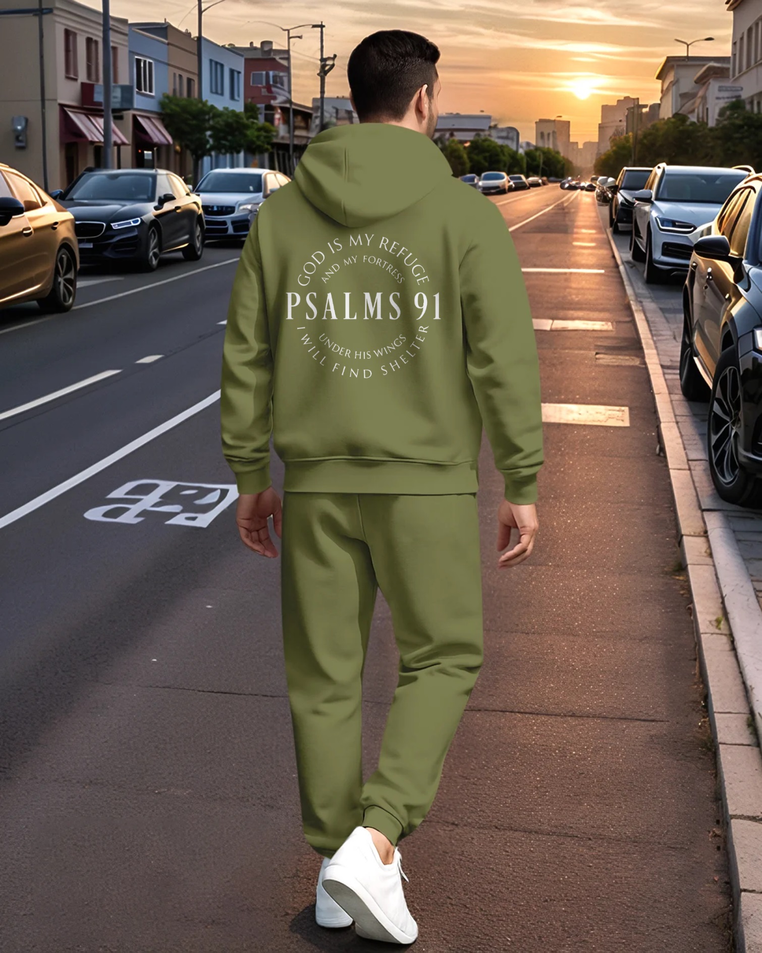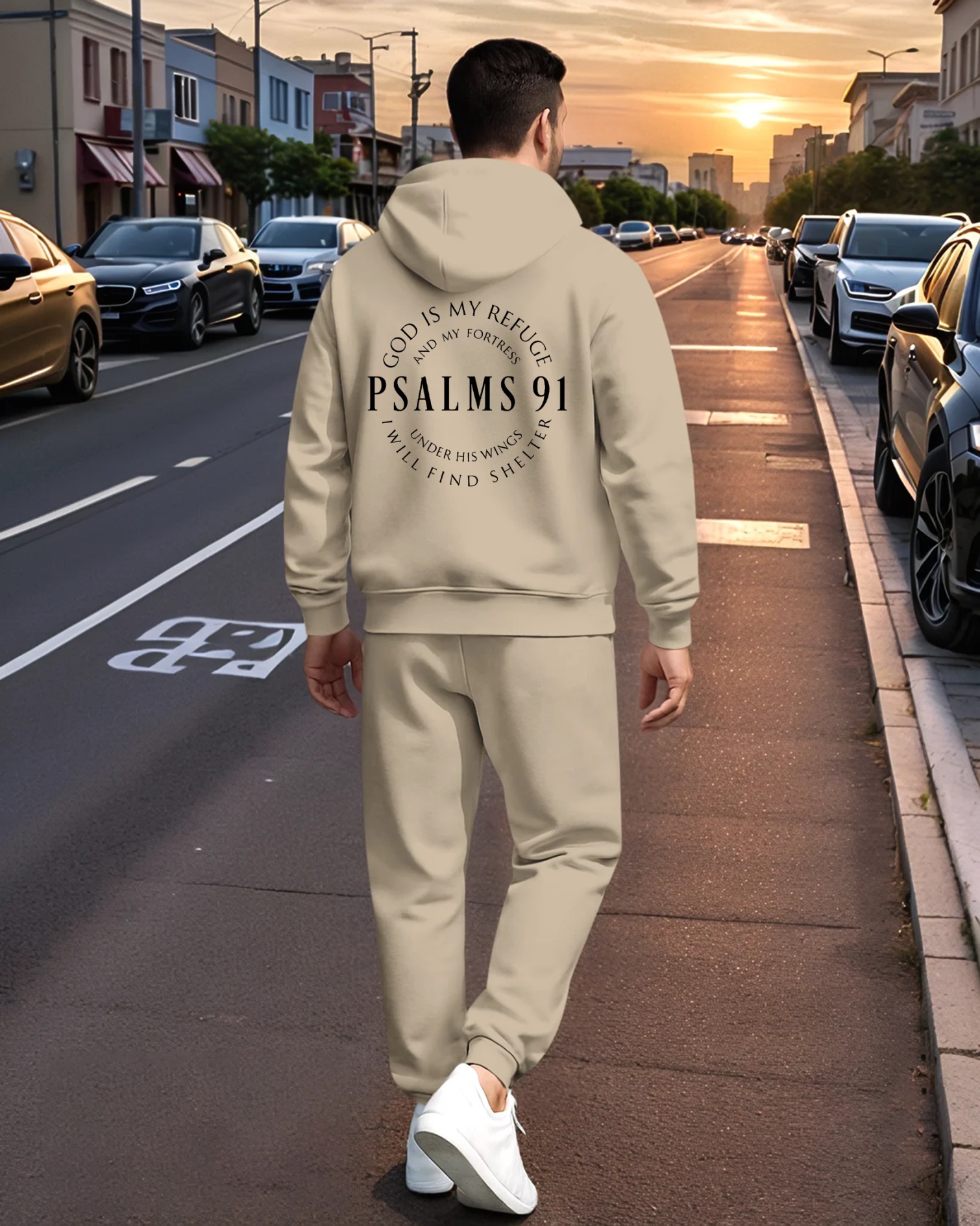 Men's Printed Hoodie And Drawstring Sweatpants Set 013