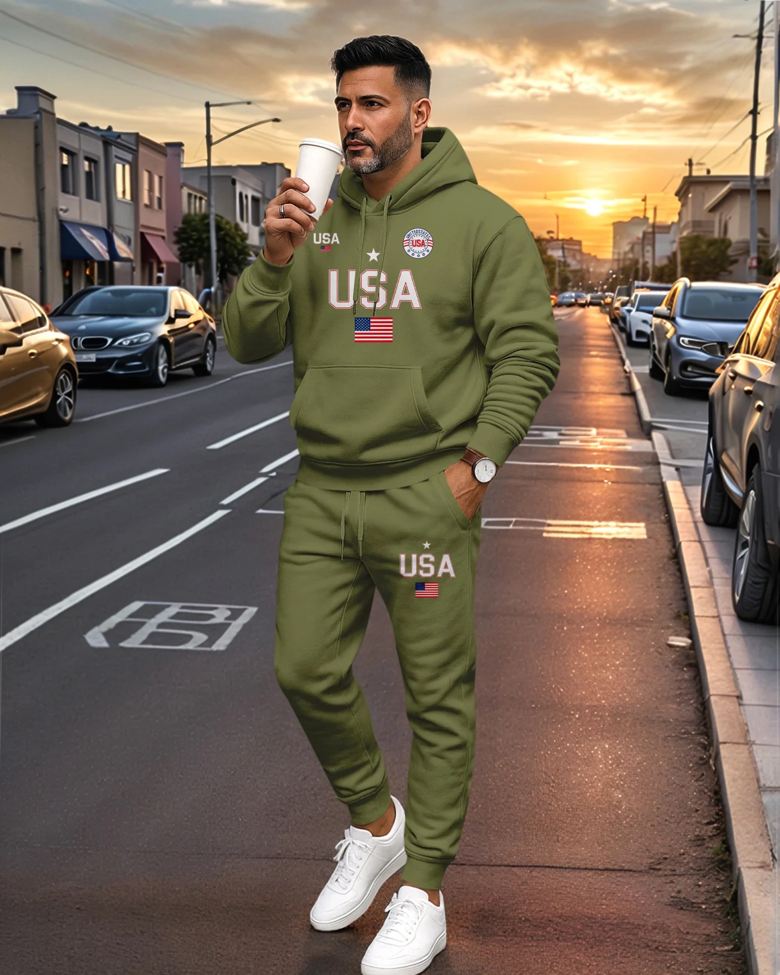 Men's Printed Hoodie And Drawstring Sweatpants Set 07
