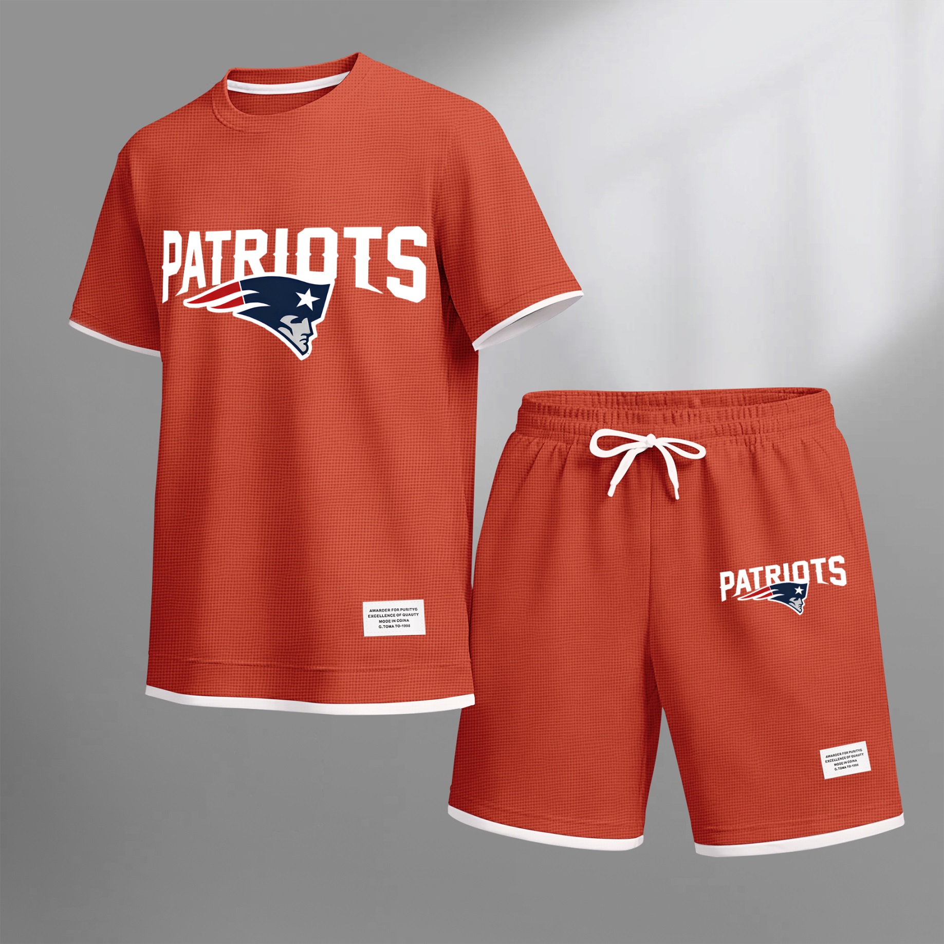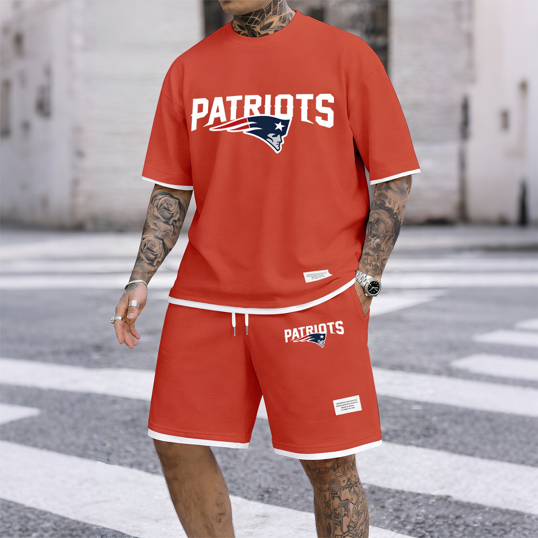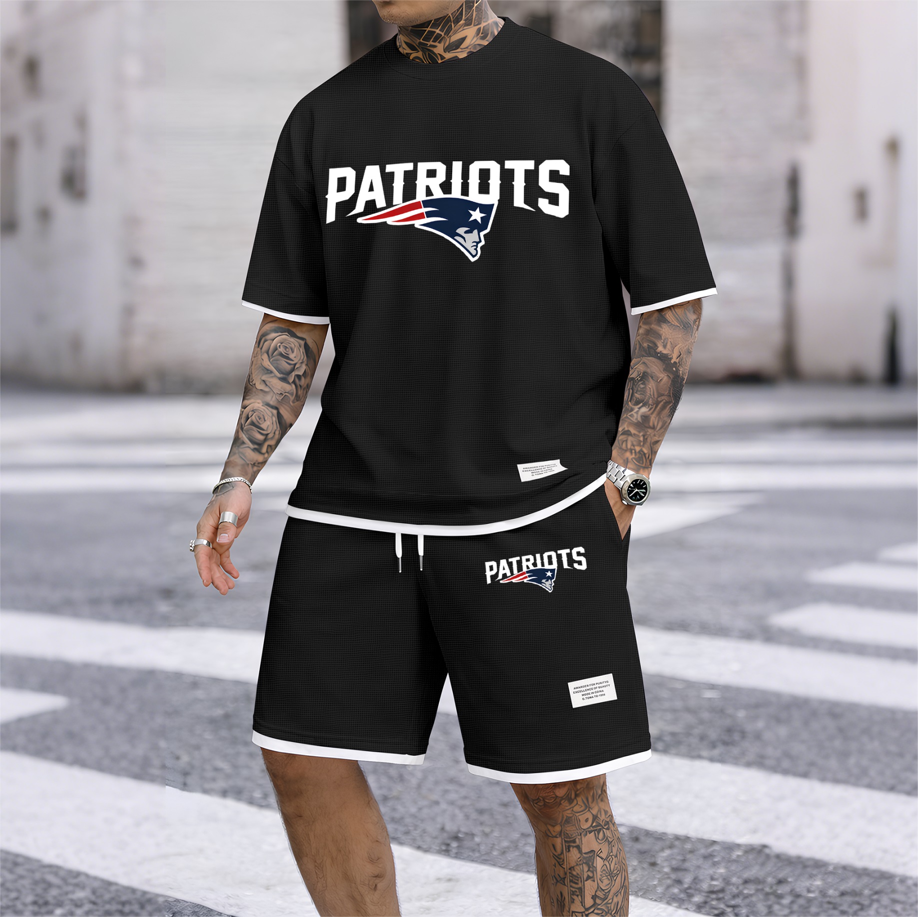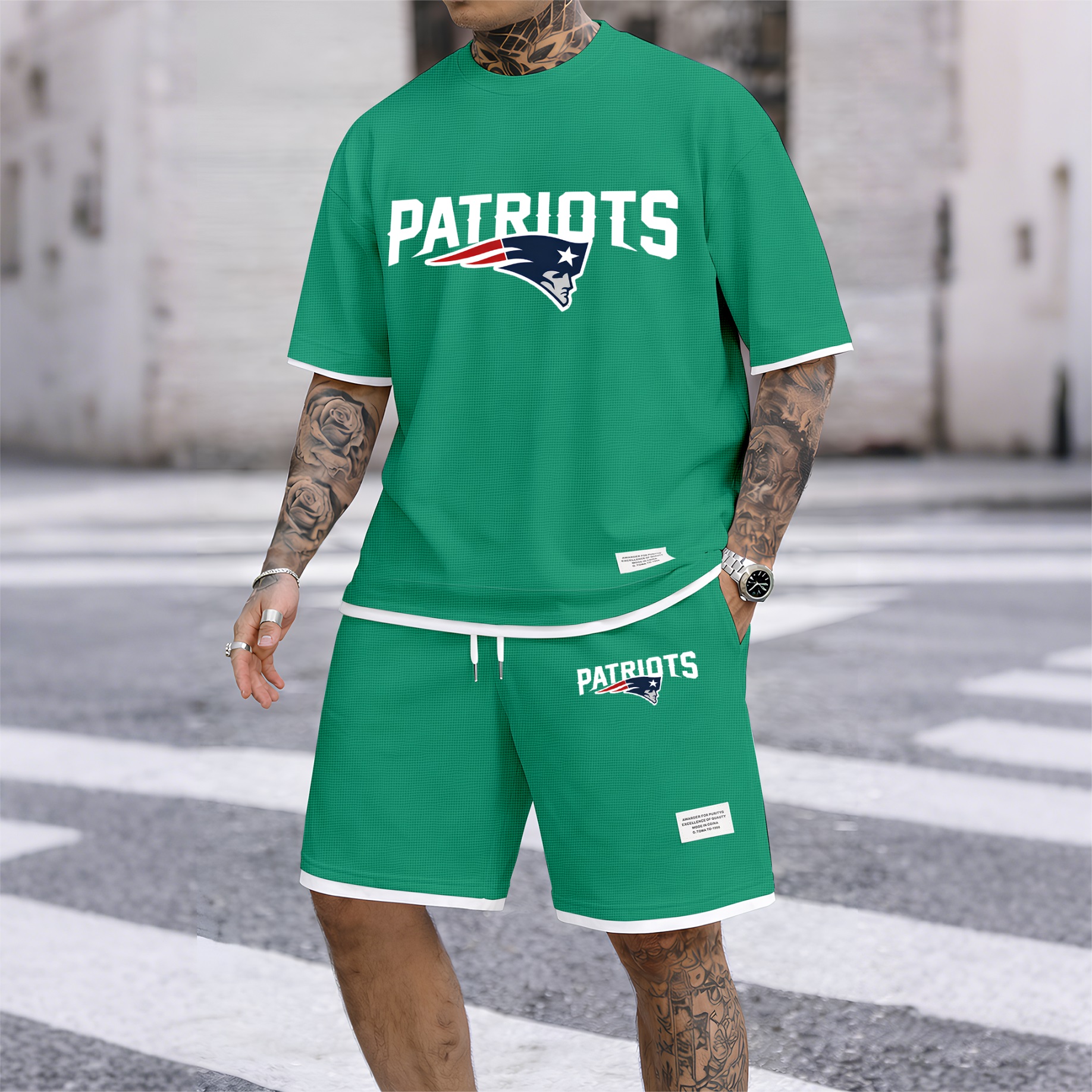 Men's Rugby-Themed Waffle Fabric Short-Sleeved Shirt And Shorts Set 003