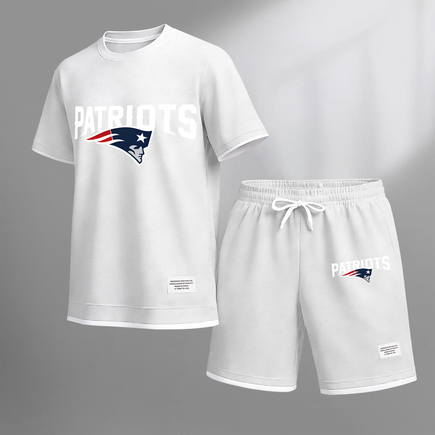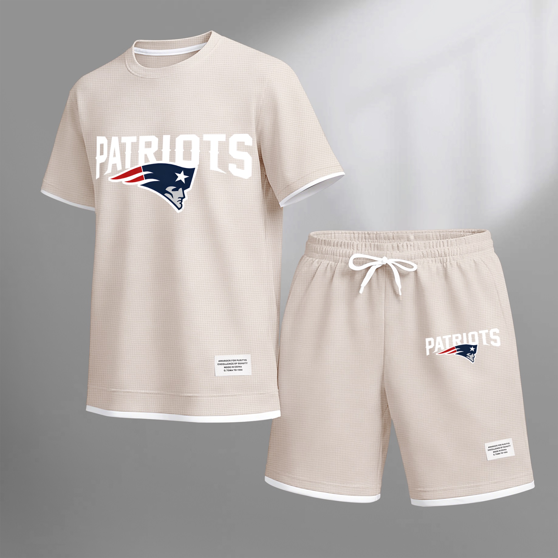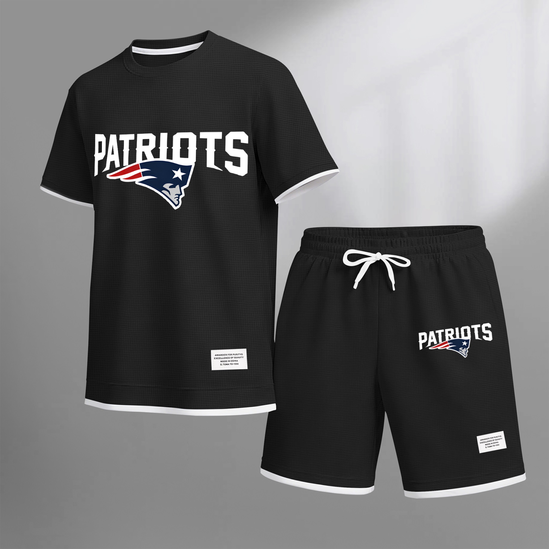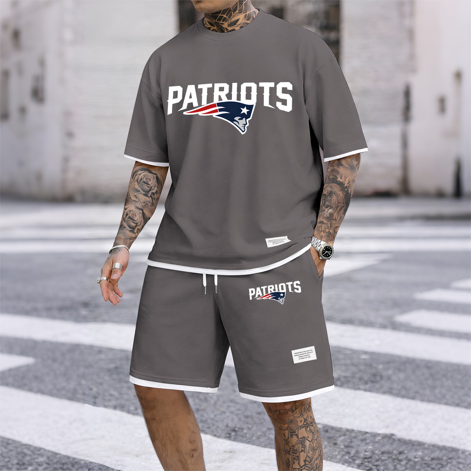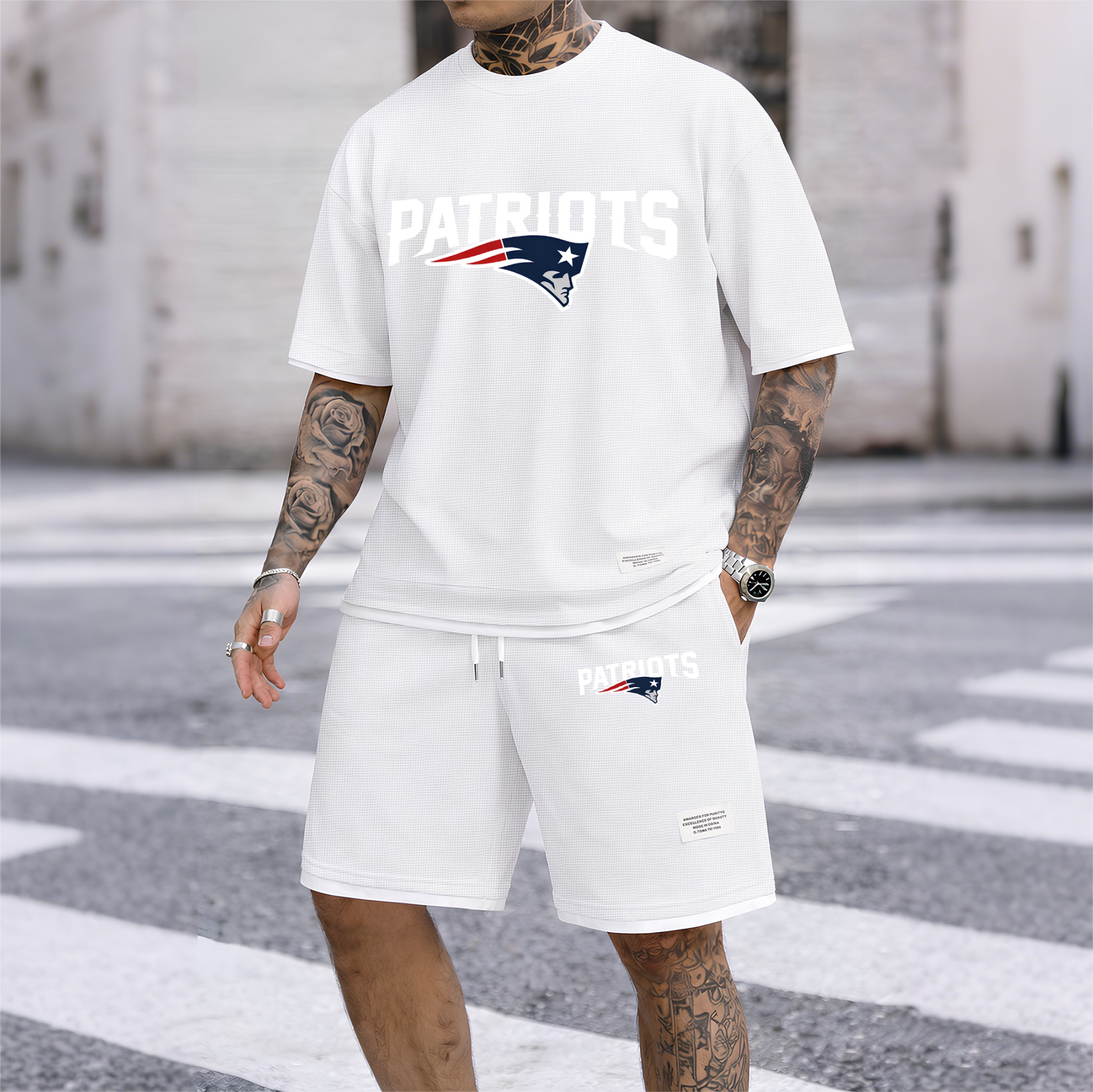 Men's Rugby-Themed Waffle Fabric Short-Sleeved Shirt And Shorts Set 003