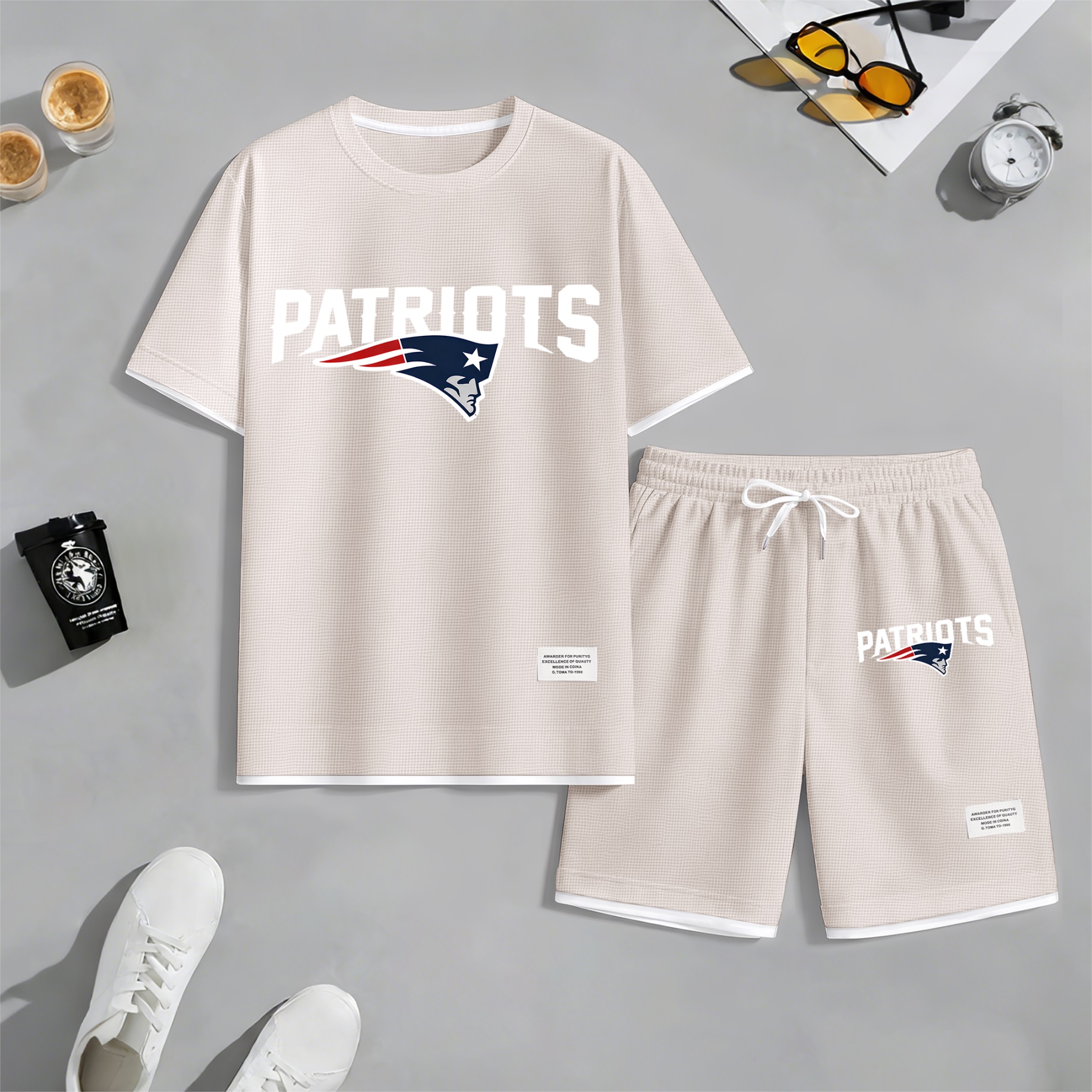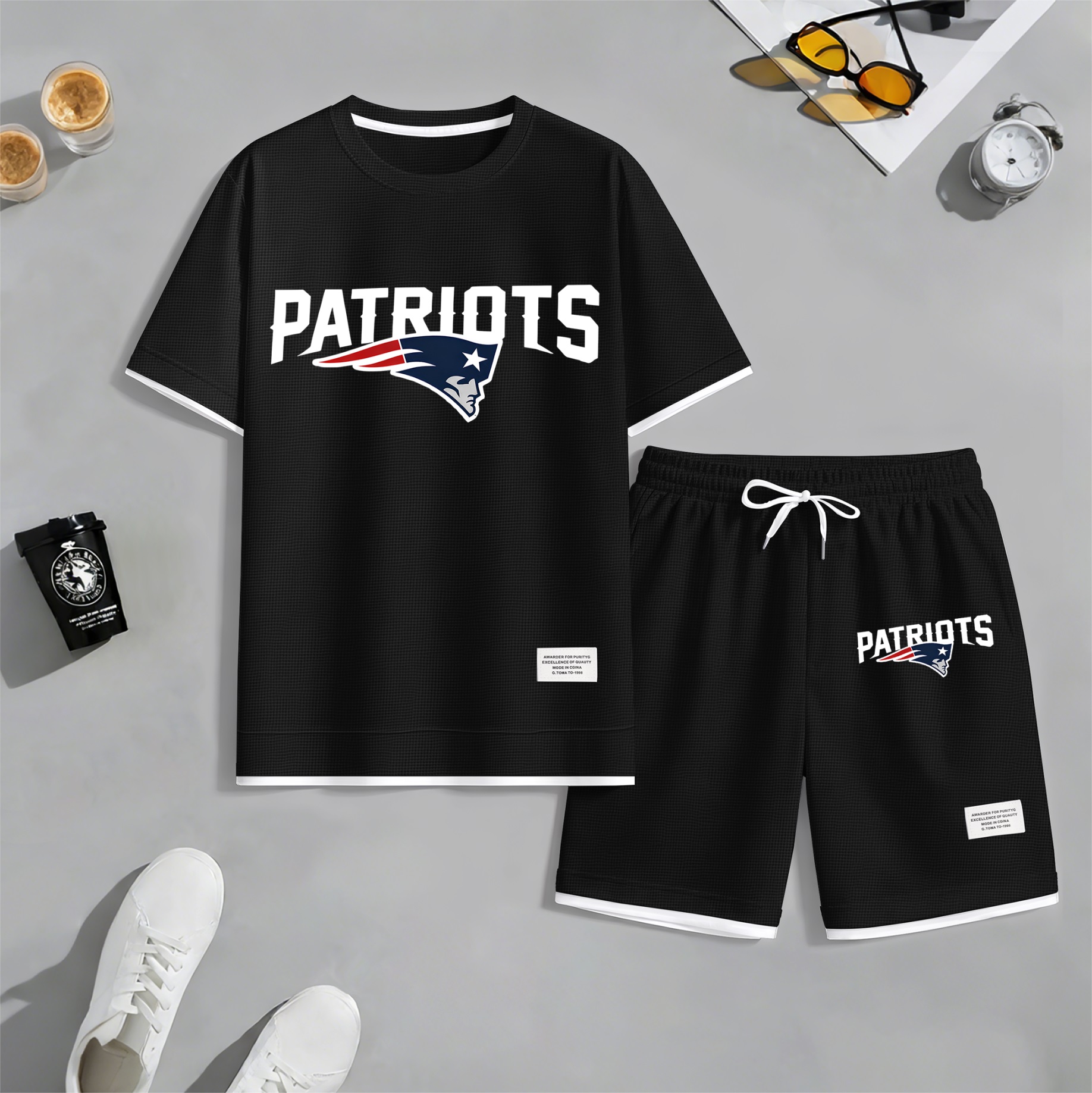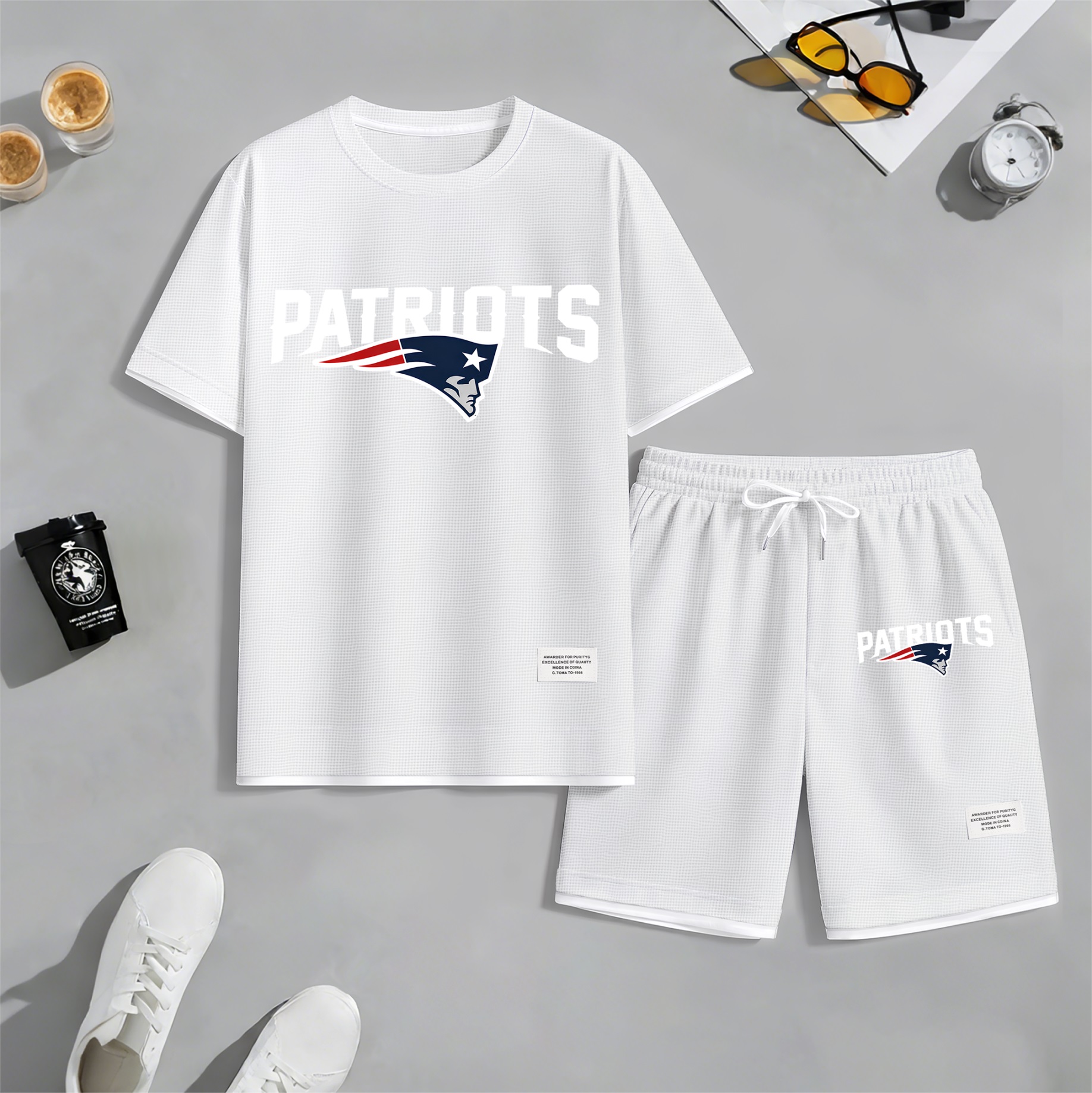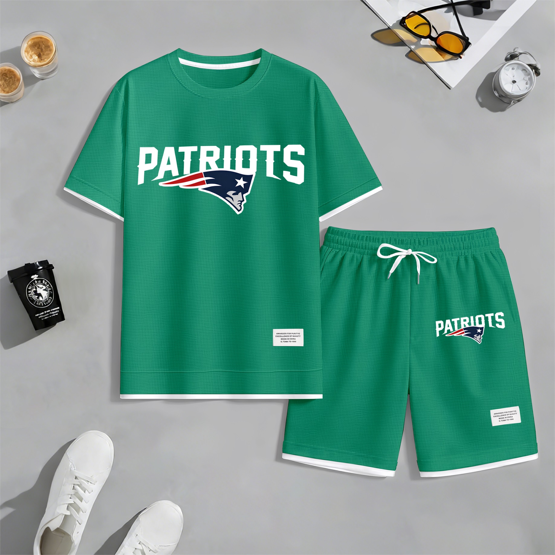 Men's Rugby-Themed Waffle Fabric Short-Sleeved Shirt And Shorts Set 003