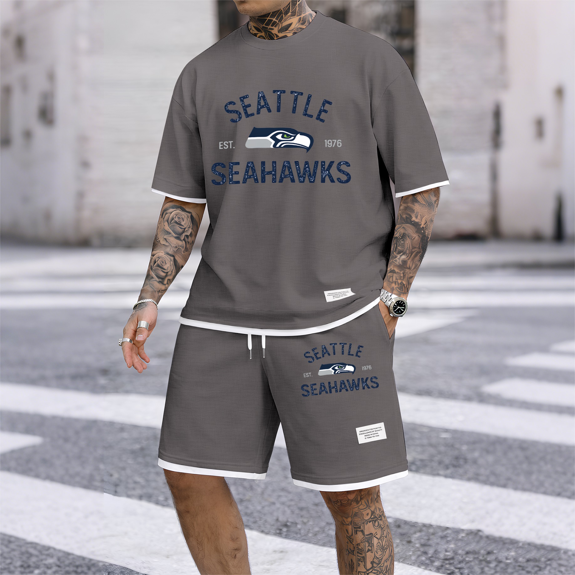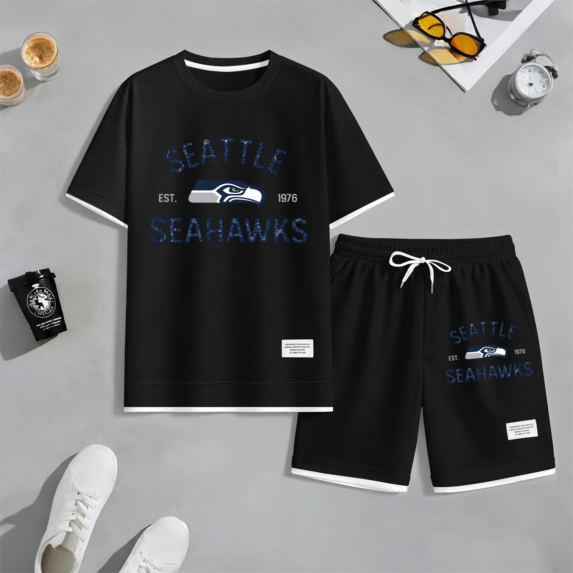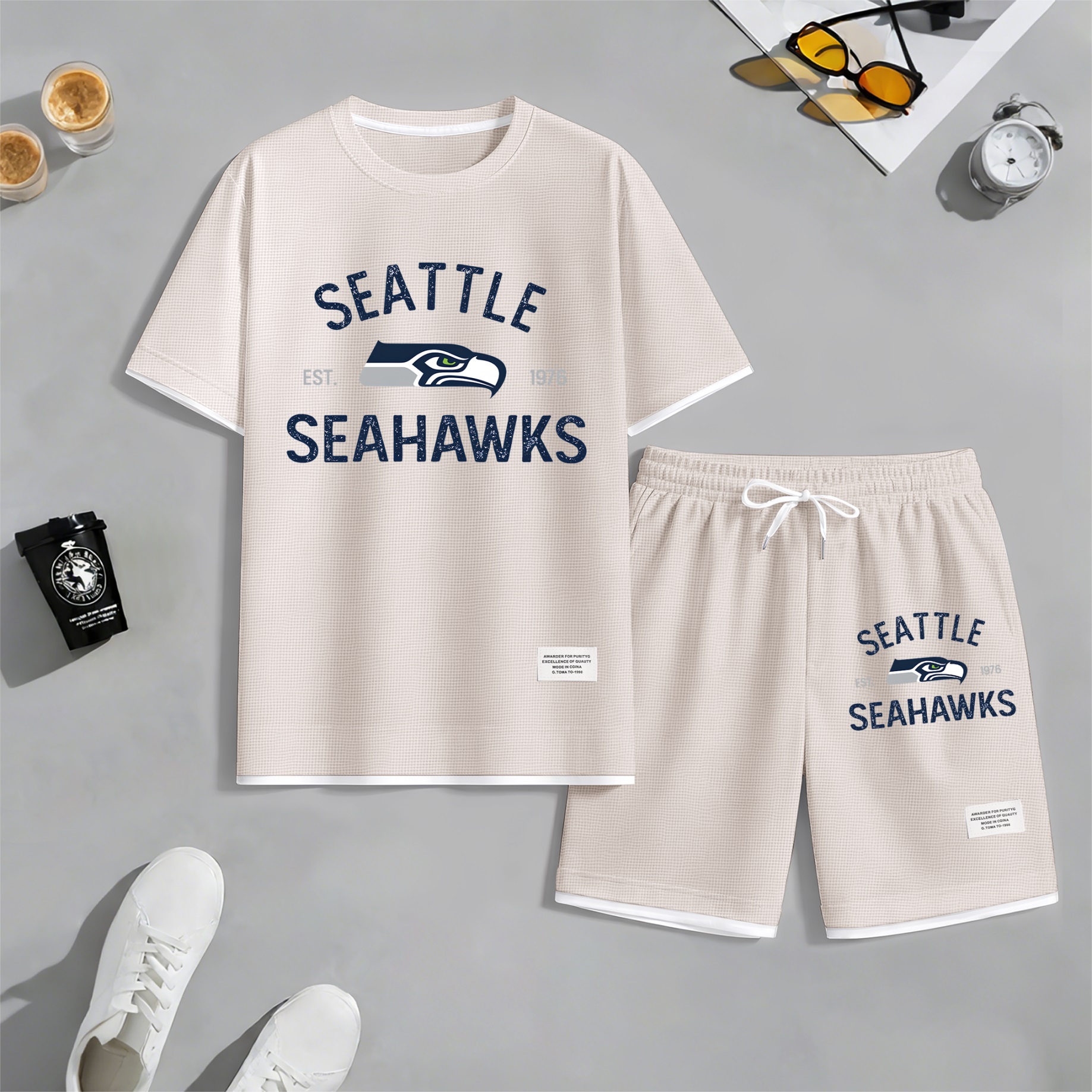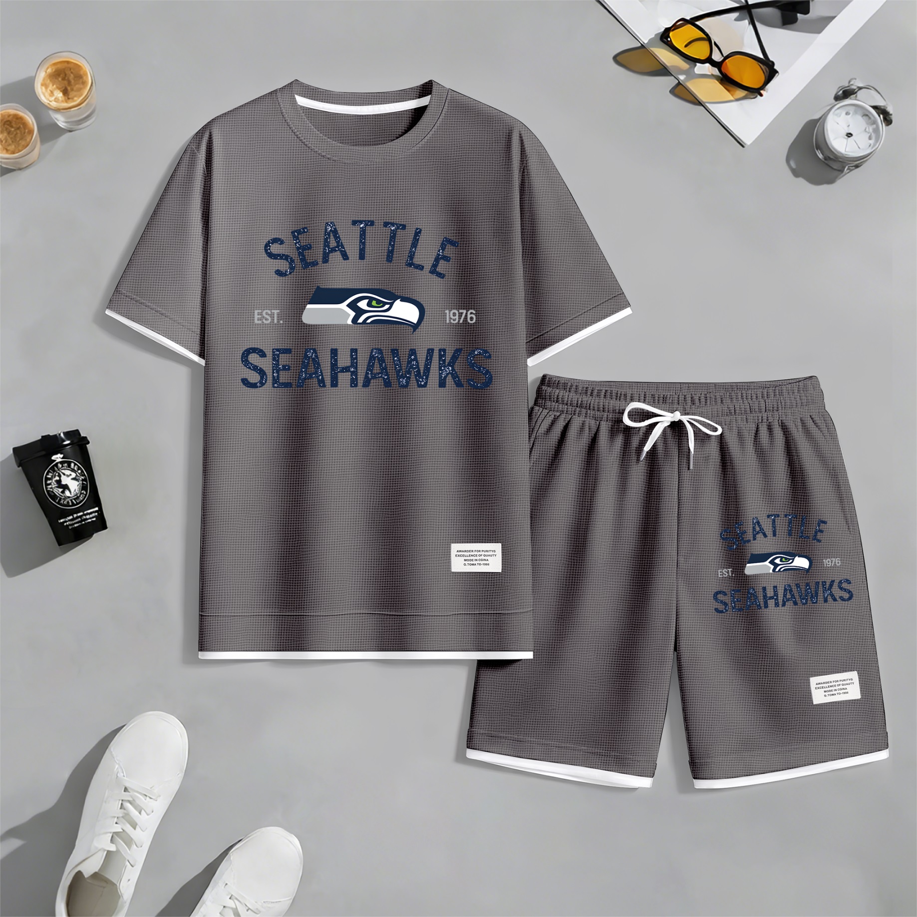 About this productDetailsSheer: NoSize Type: Normal TypeComposition: Waffle fabricBottom Style: PantsClothing Type: Short-sleeved setWashing Instructions: Machine WashableFit: Loose-FittingStyle: Casual,Athletic,MinimalistSeason: Autumn,Spring,WinterSleeve Type: Normal TypeSleeve Length: Short SleevesRegion Of Origin: ChinaMaterials: PolyesterDescriptionPackaging specifications: A printed hoodie single set High-quality material: The material is 100% polyester fiber, the fabric is soft, smooth, and comfortable Wide range of applications: Very suitable for sports and leisure, perfect for going out or relaxing at home Suitable for various occasions, casual and versatile.
