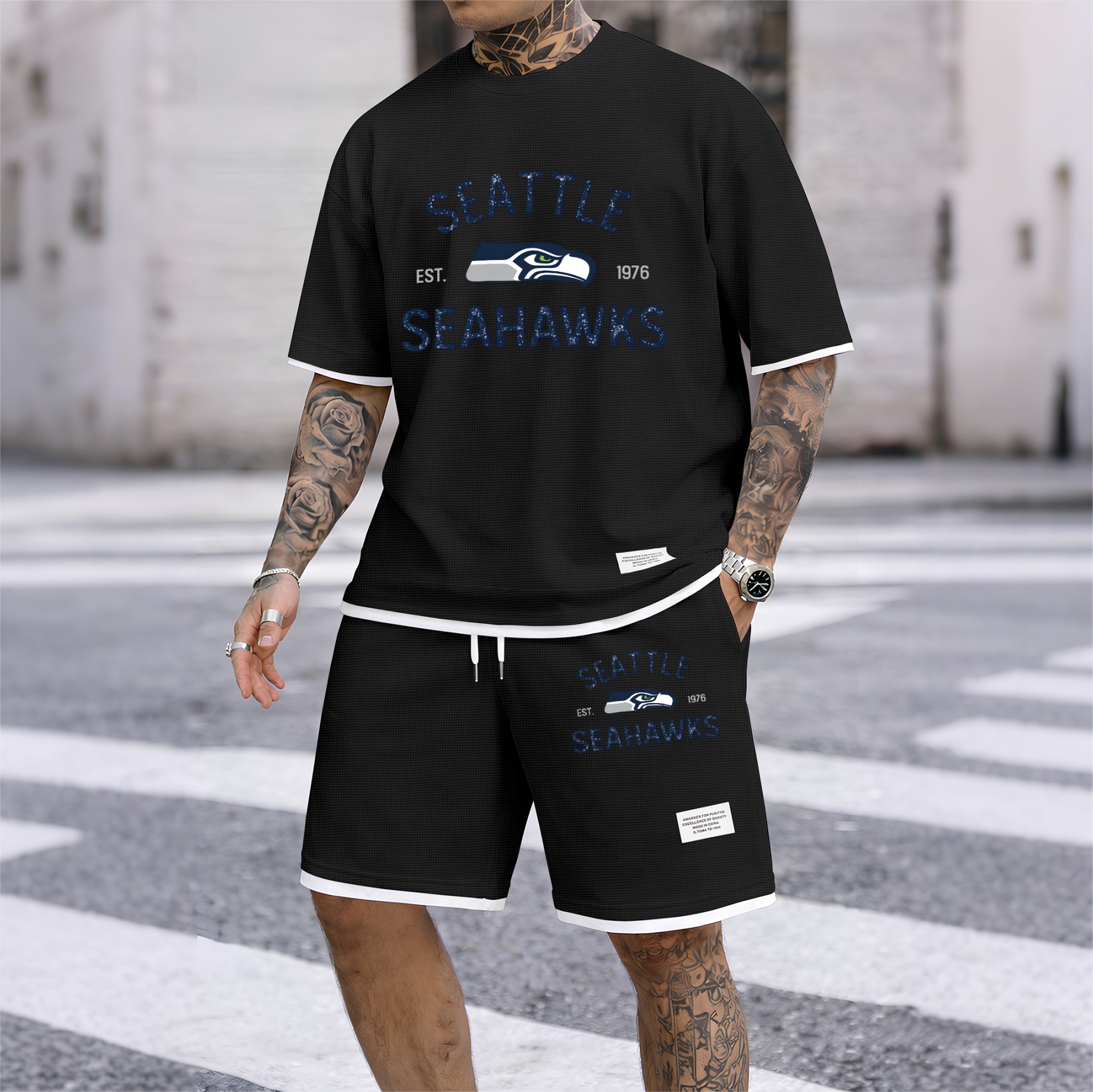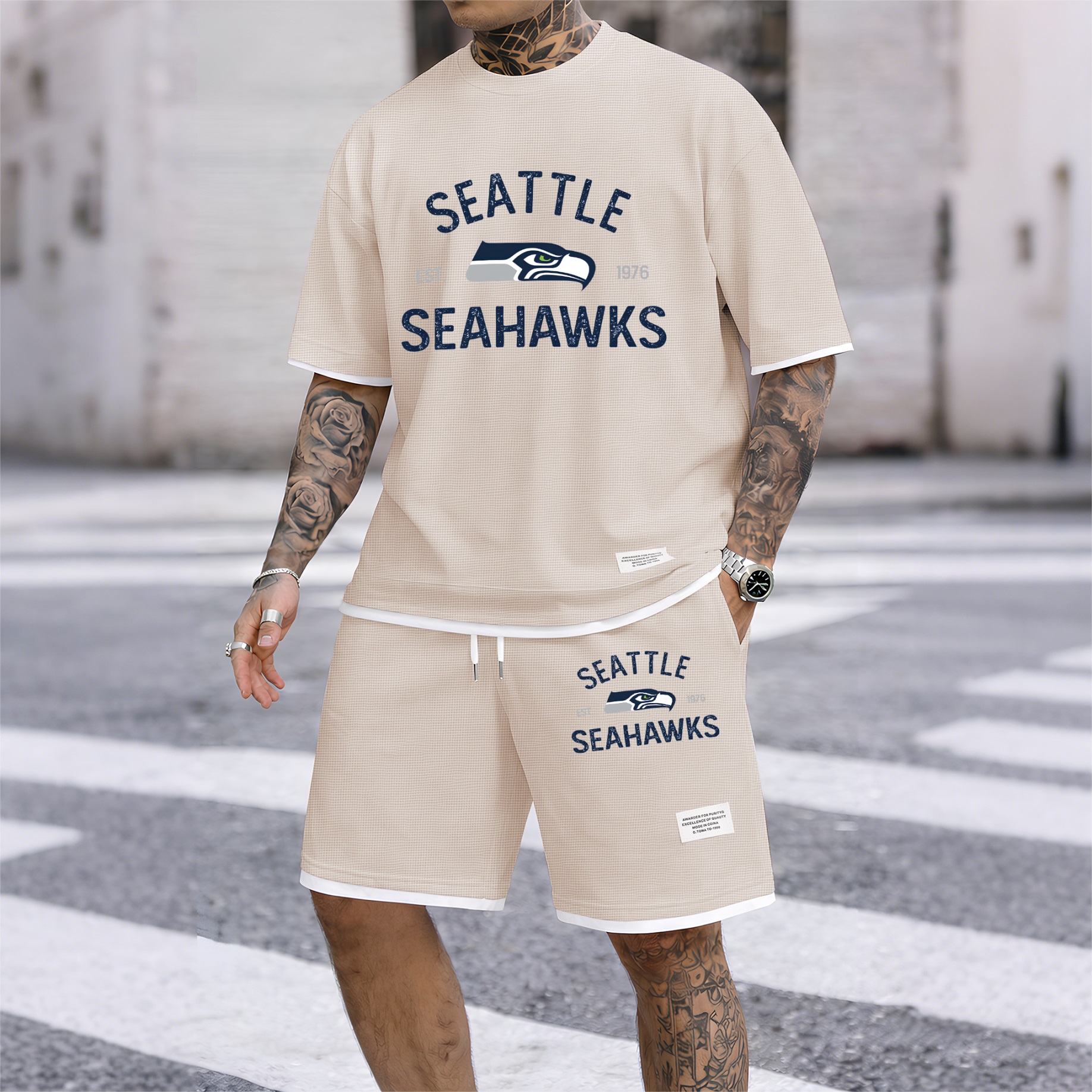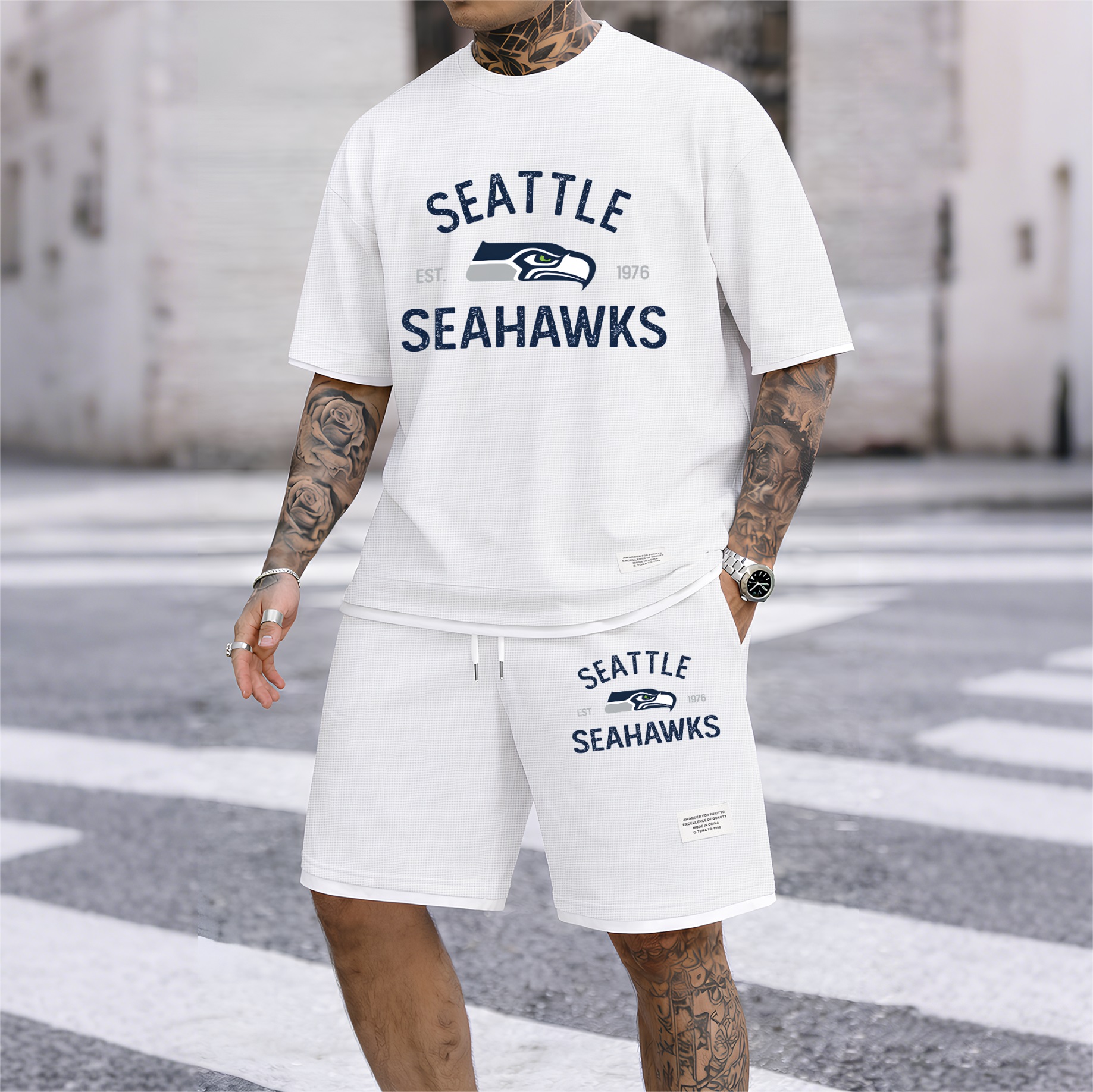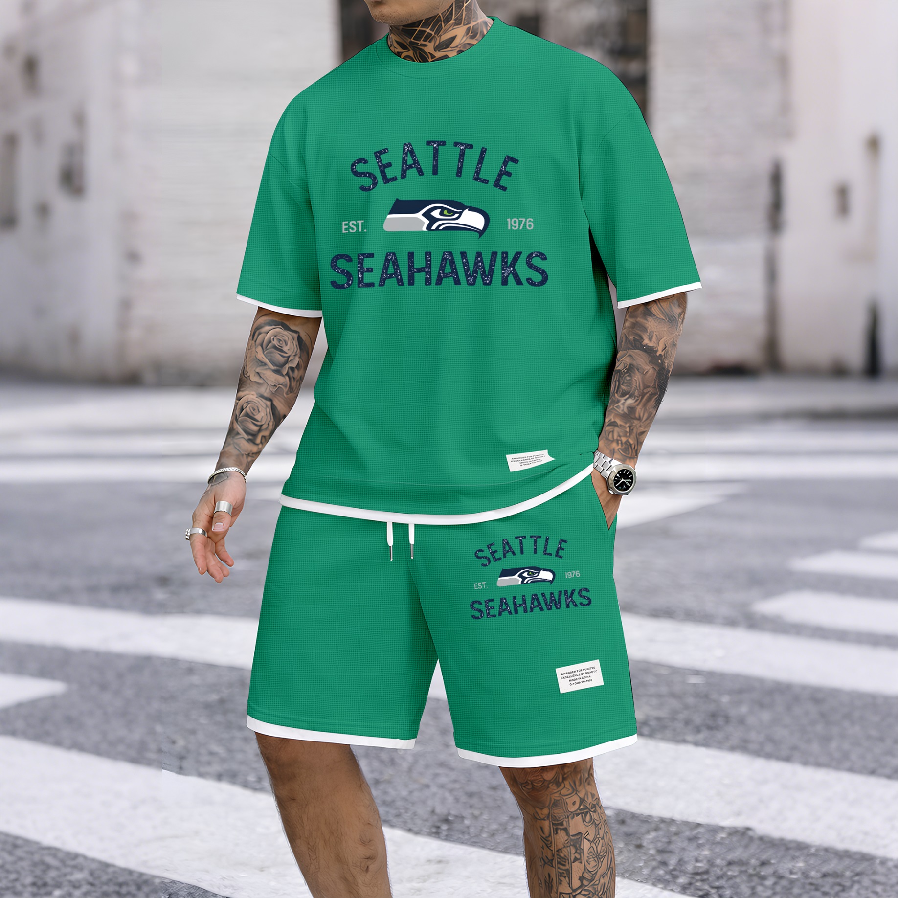 About this productDetailsSheer: NoSize Type: Normal TypeComposition: Waffle fabricBottom Style: PantsClothing Type: Short-sleeved setWashing Instructions: Machine WashableFit: Loose-FittingStyle: Casual,Athletic,MinimalistSeason: Autumn,Spring,WinterSleeve Type: Normal TypeSleeve Length: Short SleevesRegion Of Origin: ChinaMaterials: PolyesterDescriptionPackaging specifications: A printed hoodie single set High-quality material: The material is 100% polyester fiber, the fabric is soft, smooth, and comfortable Wide range of applications: Very suitable for sports and leisure, perfect for going out or relaxing at home Suitable for various occasions, casual and versatile.