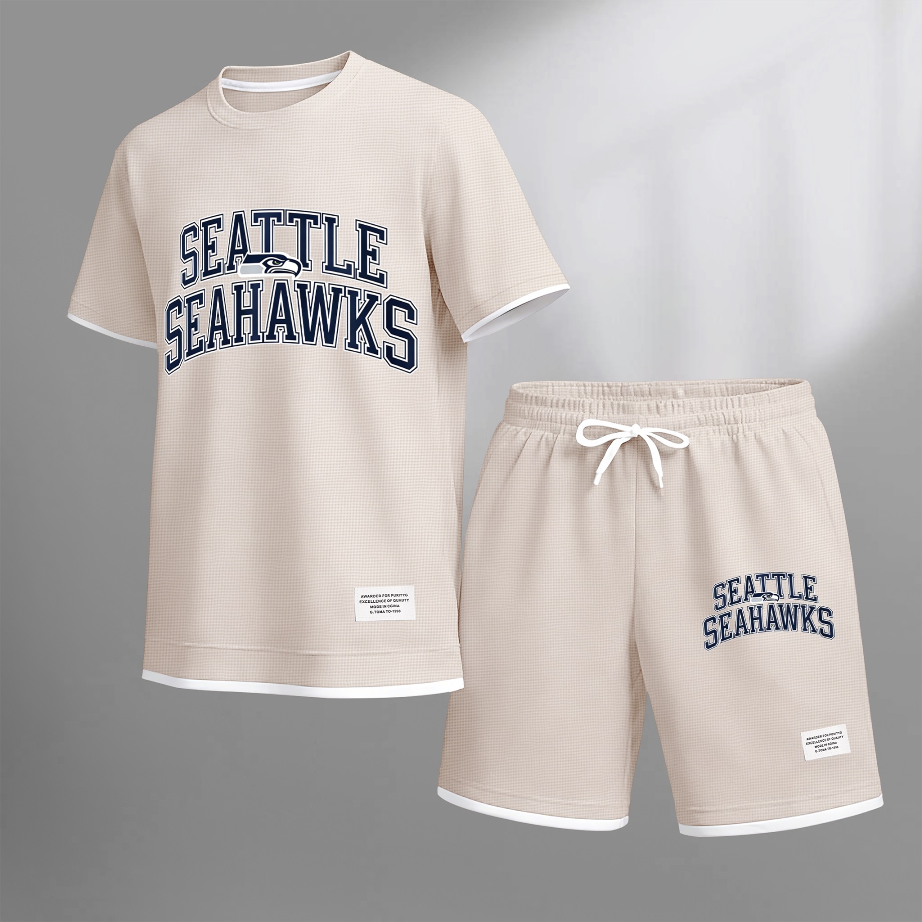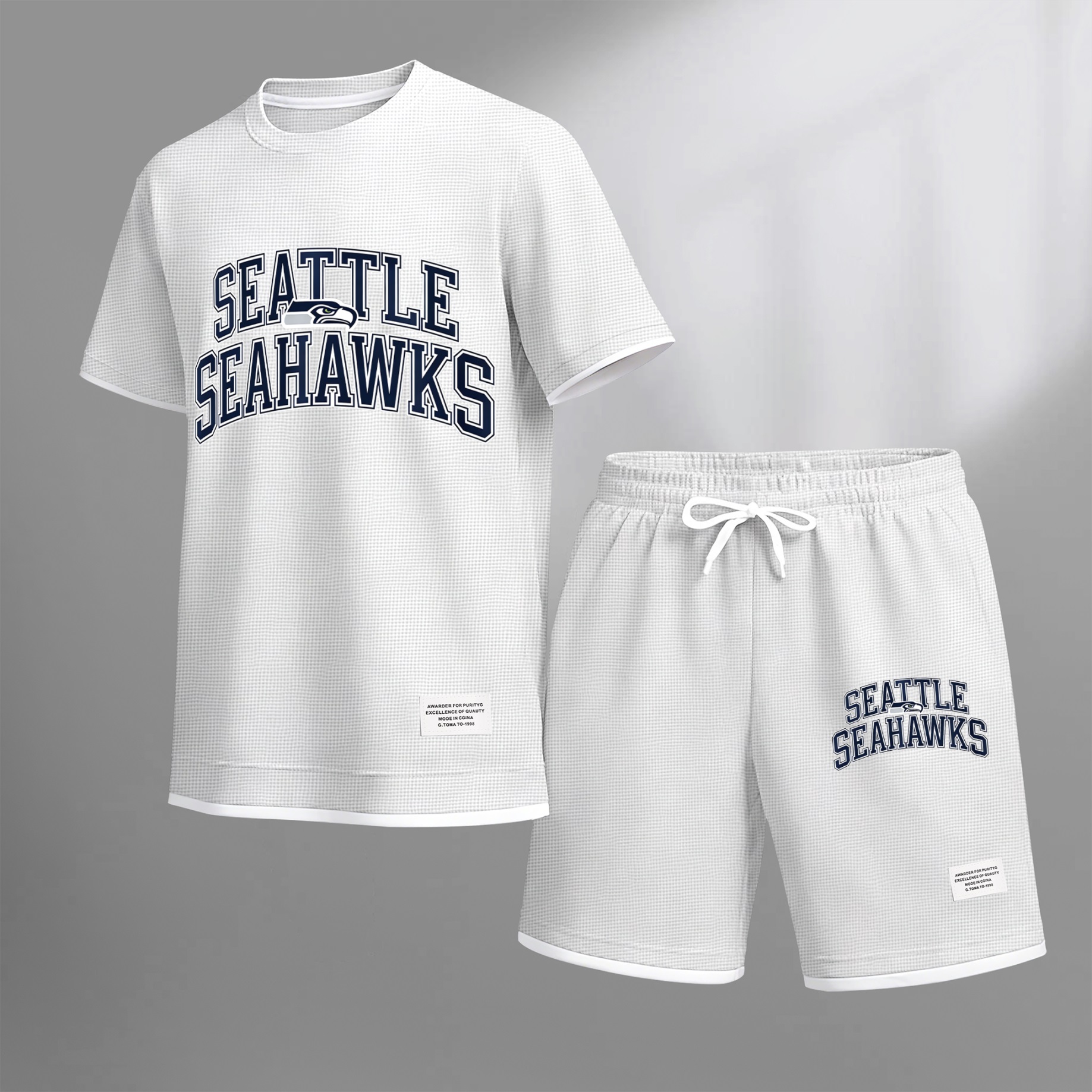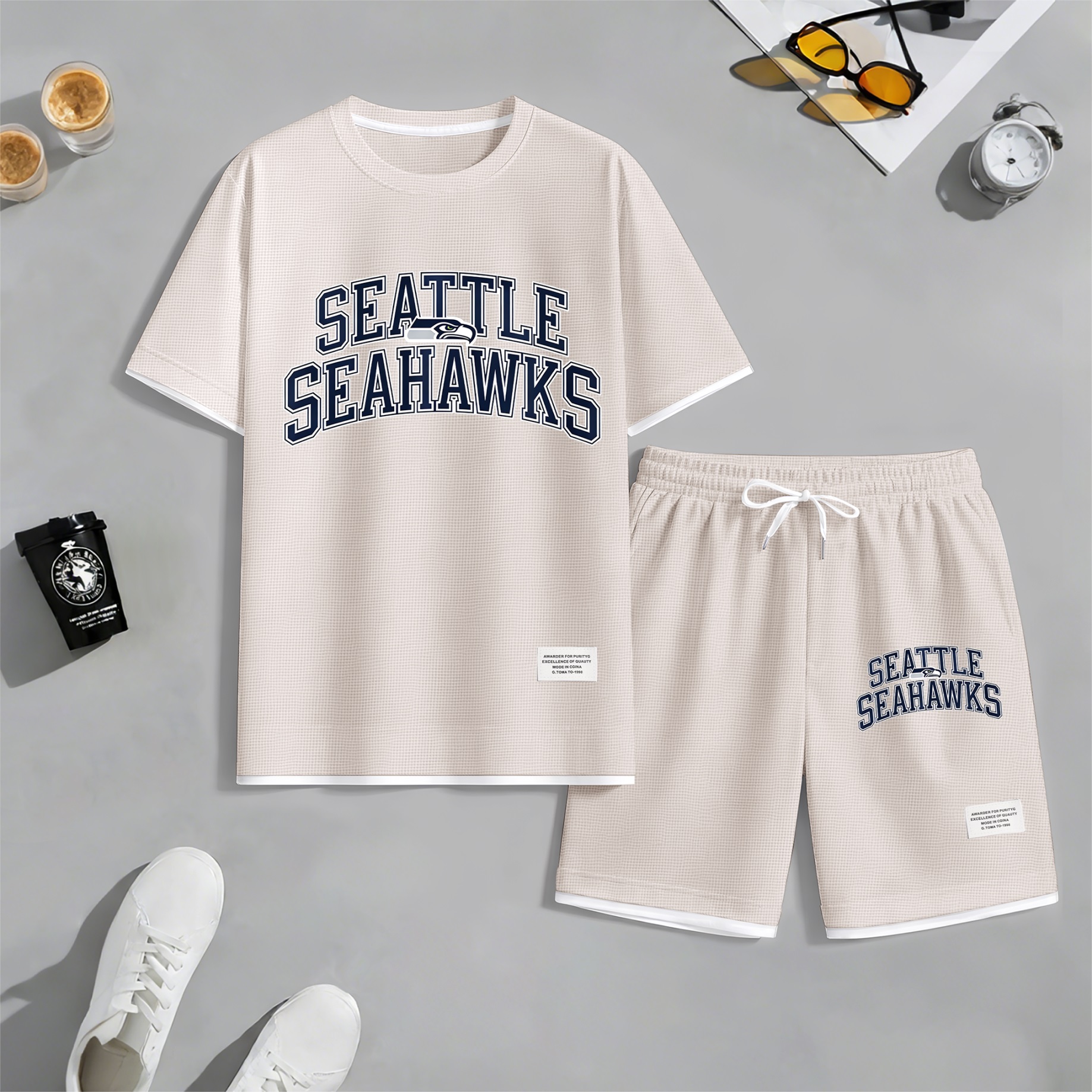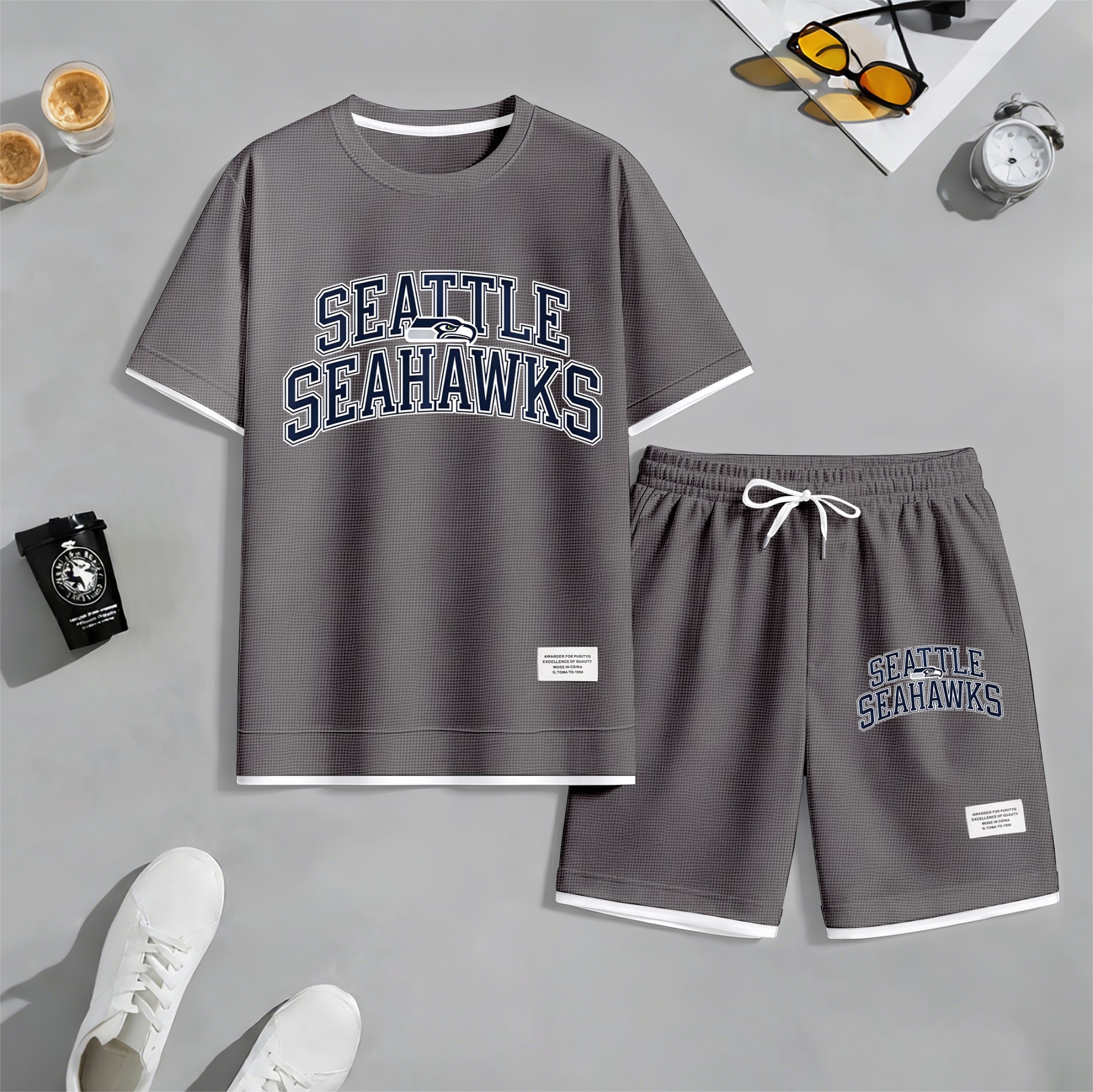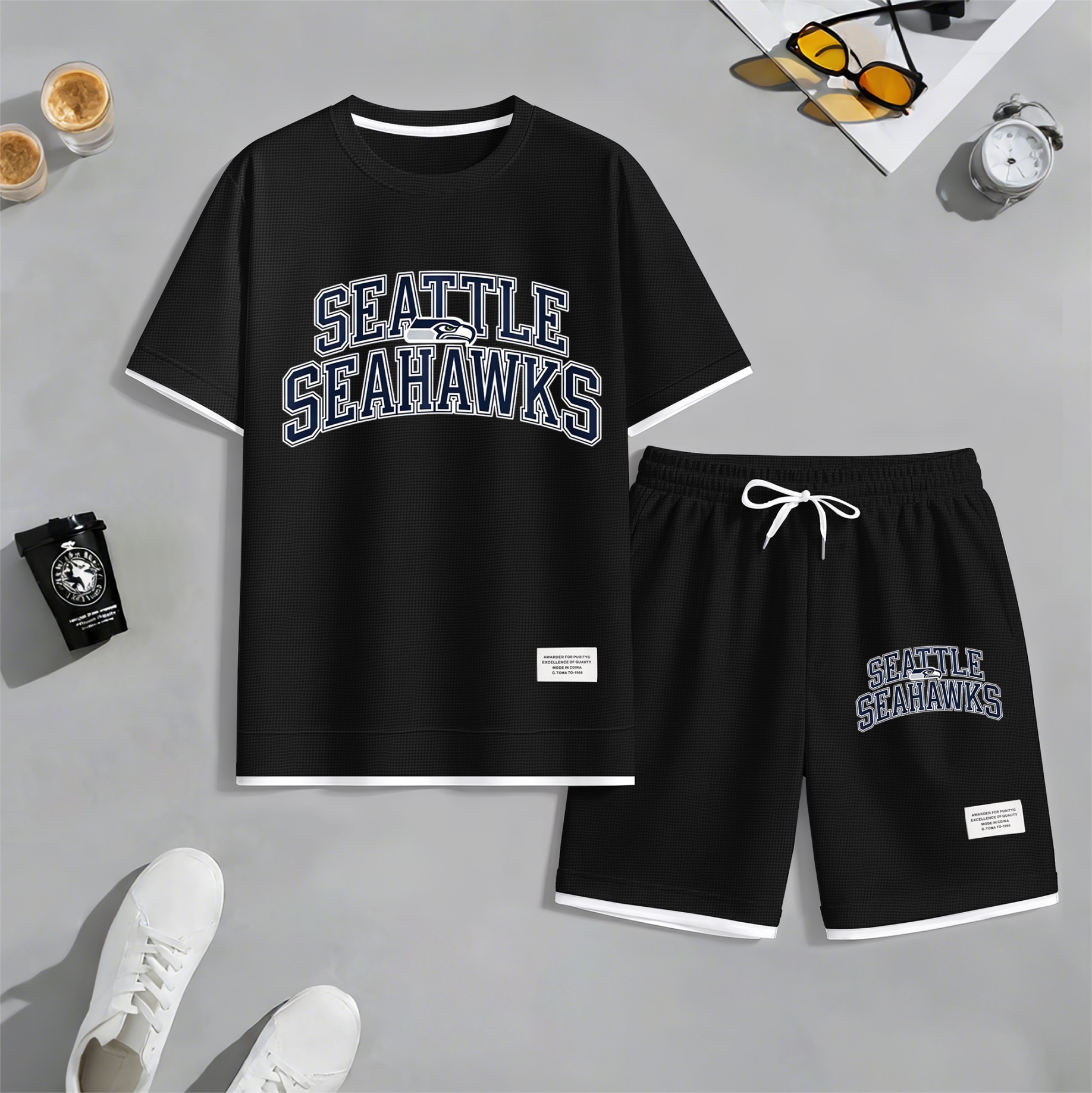 Men's Rugby-Themed Waffle Fabric Short-Sleeved Shirt And Shorts Set 009