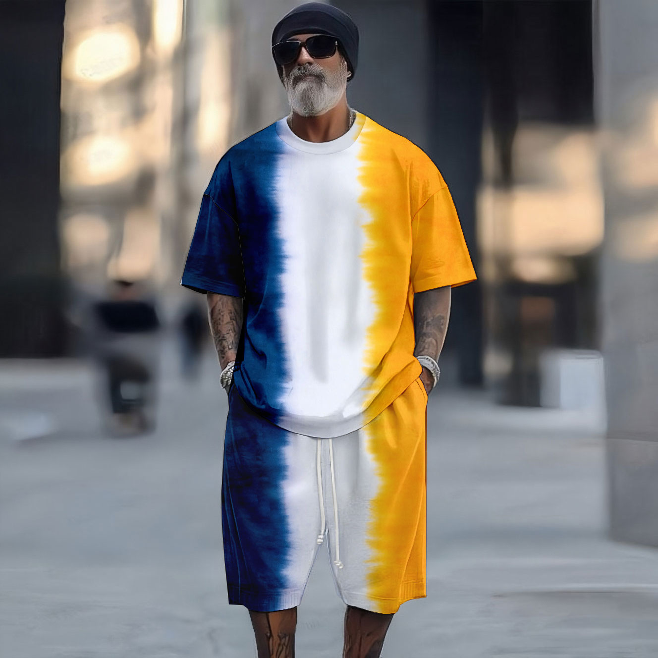 Men's Styles Casual Contrast Color Tie Dye Printed Round-Neck Short-Sleeved Two-Piece Set