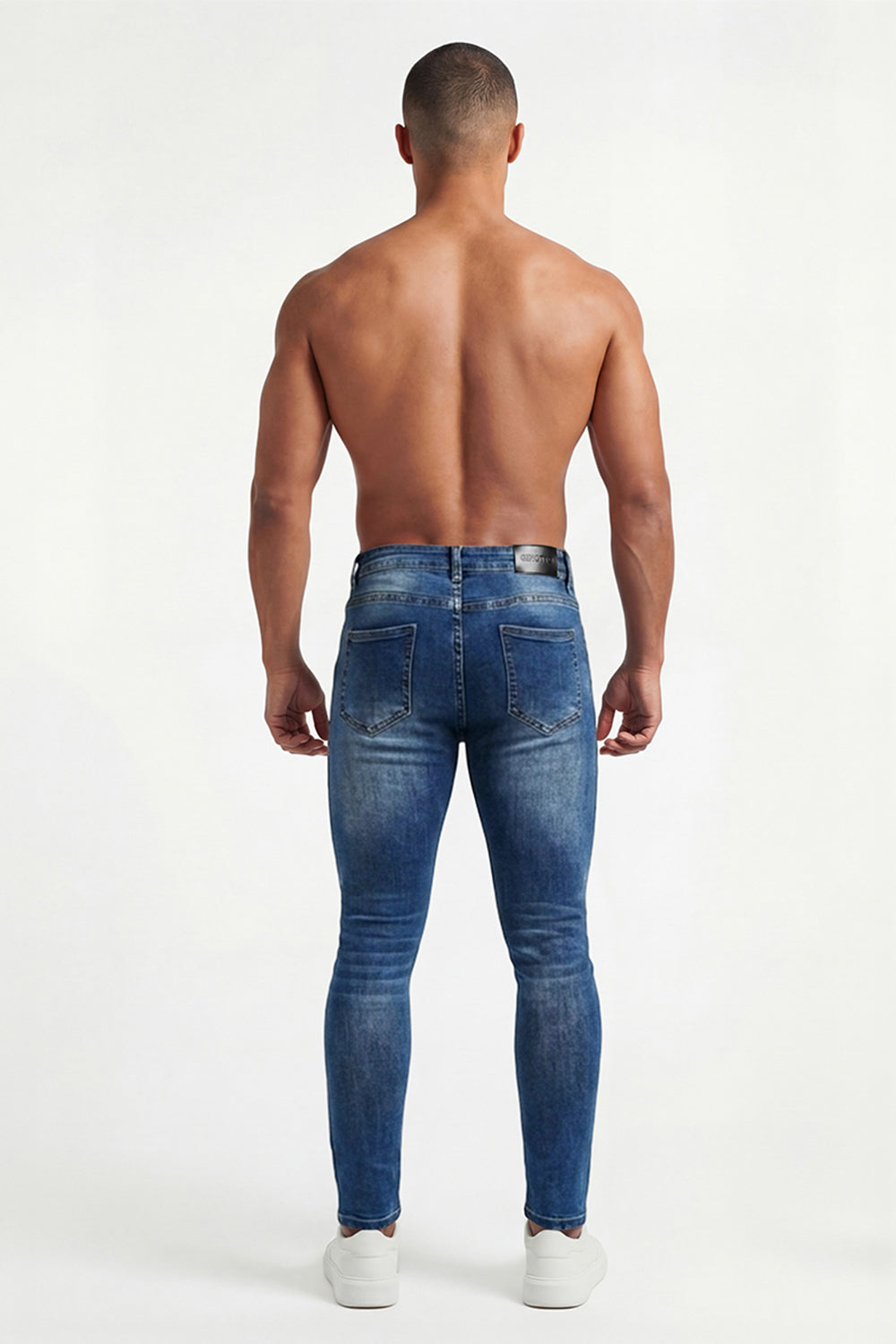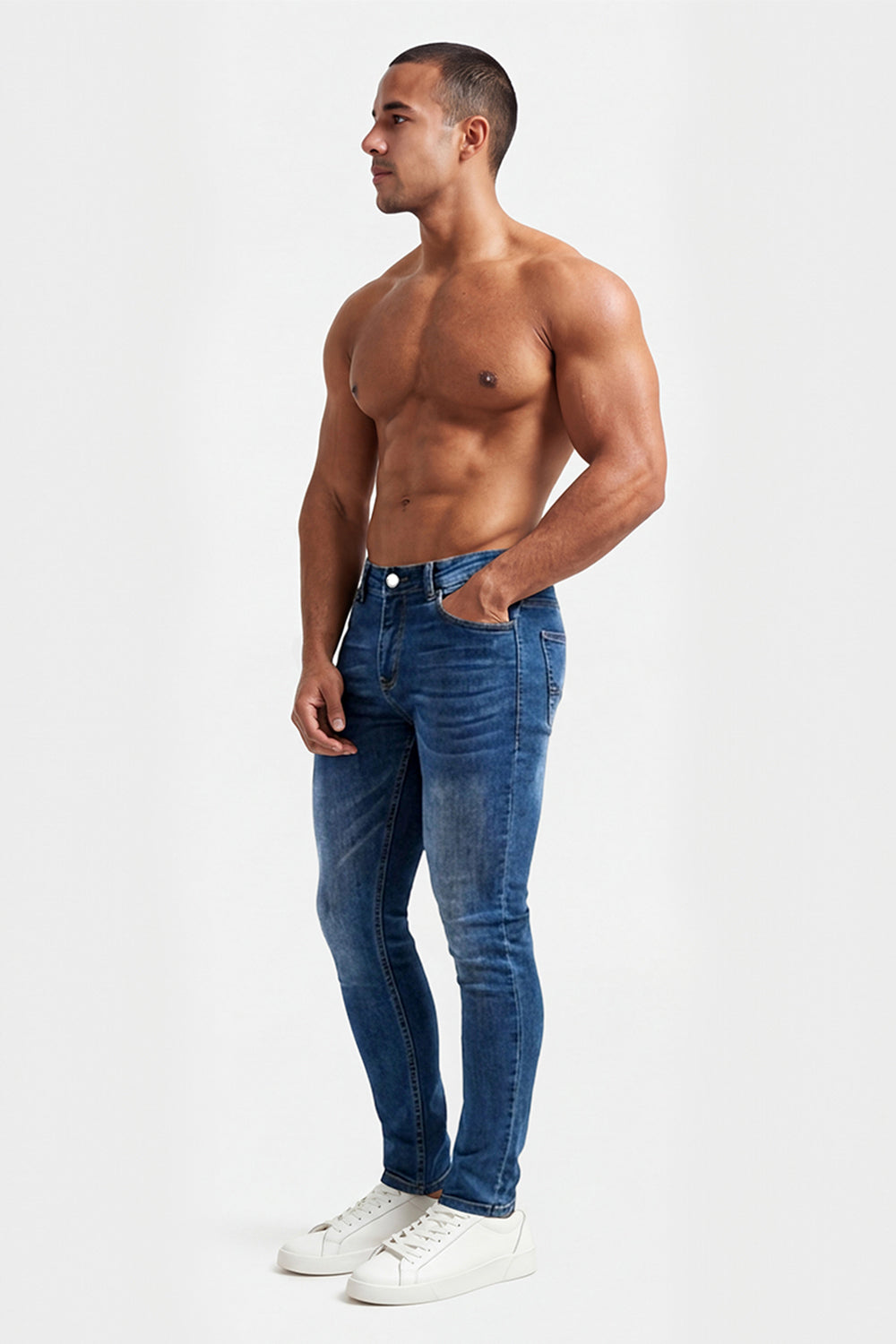 Super comfortable and high-stretch denim jeans designed with a form-flattering, muscular thighs fit. Our stripe skinny stretch jeans fit your lower body to wear all day long and can be paired with our popular basic tops.
