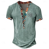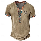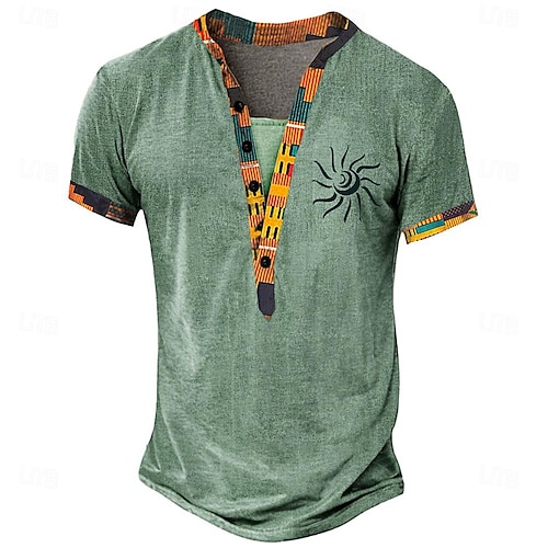 Men's Tribal Bandana Print T Shirt Henley Shirt Short Sleeve 3D Print Designer Ethnic Vacation Casual Daily Summer Spring Yellow Green Khaki Henley Henley T-Shirt
