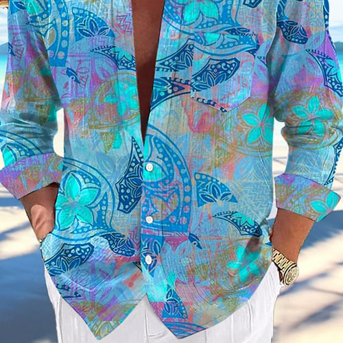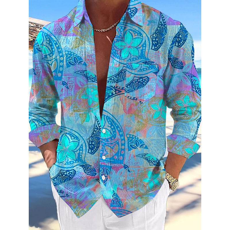 Men's Vintage Floral Pattern Pocket Single Breasted Shirt