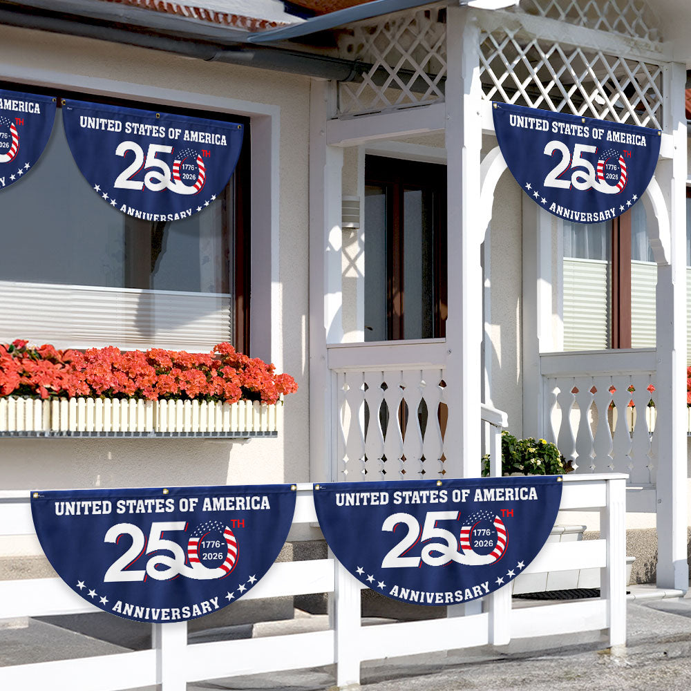 Patriotic 250th Anniversary 1776 2026 United States of America Semiquincentennial Fan Flag Flagwix's Non-Pleated Fan Flag
