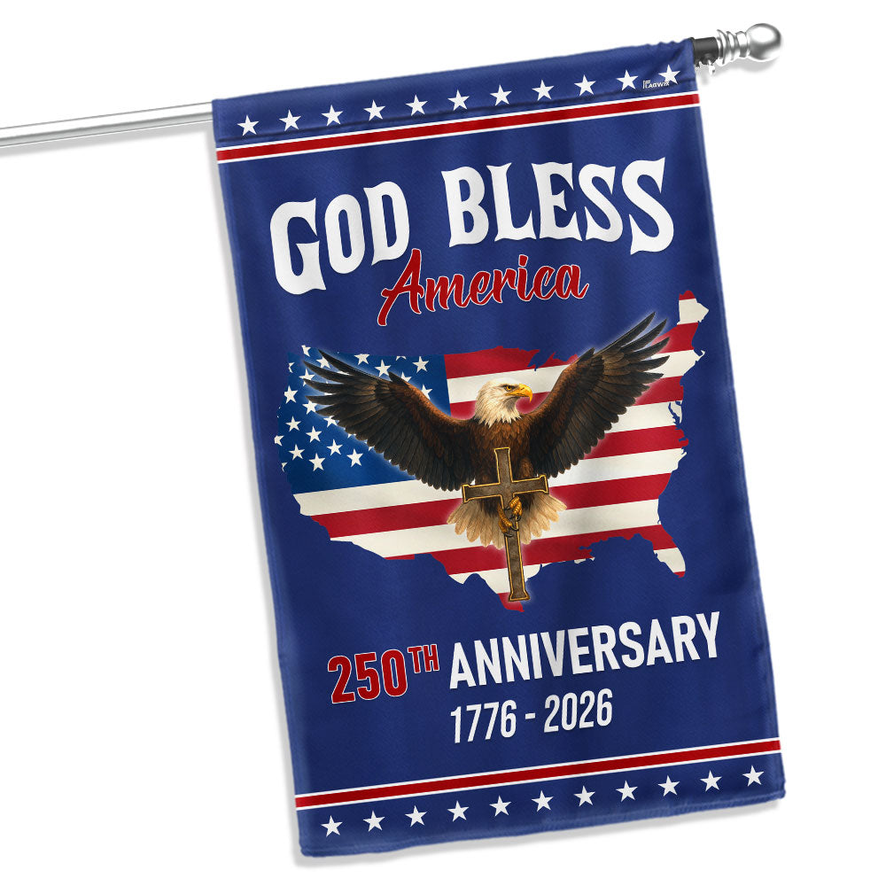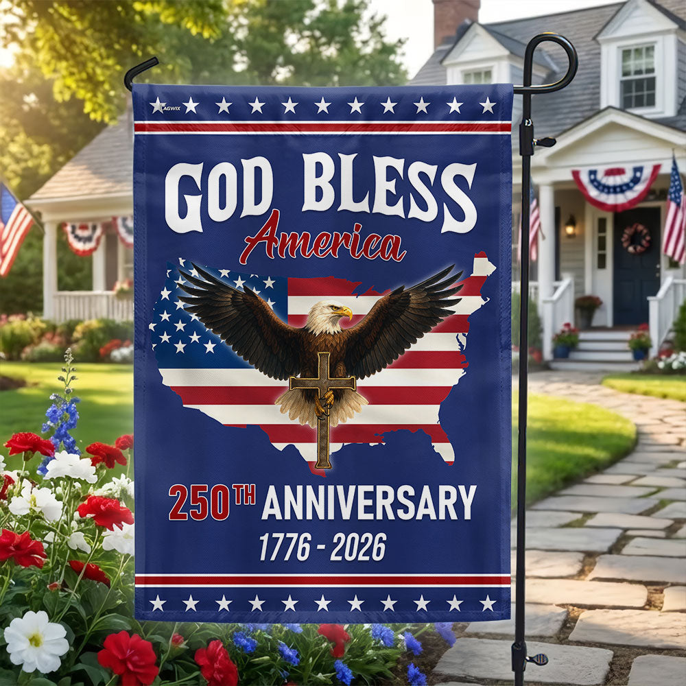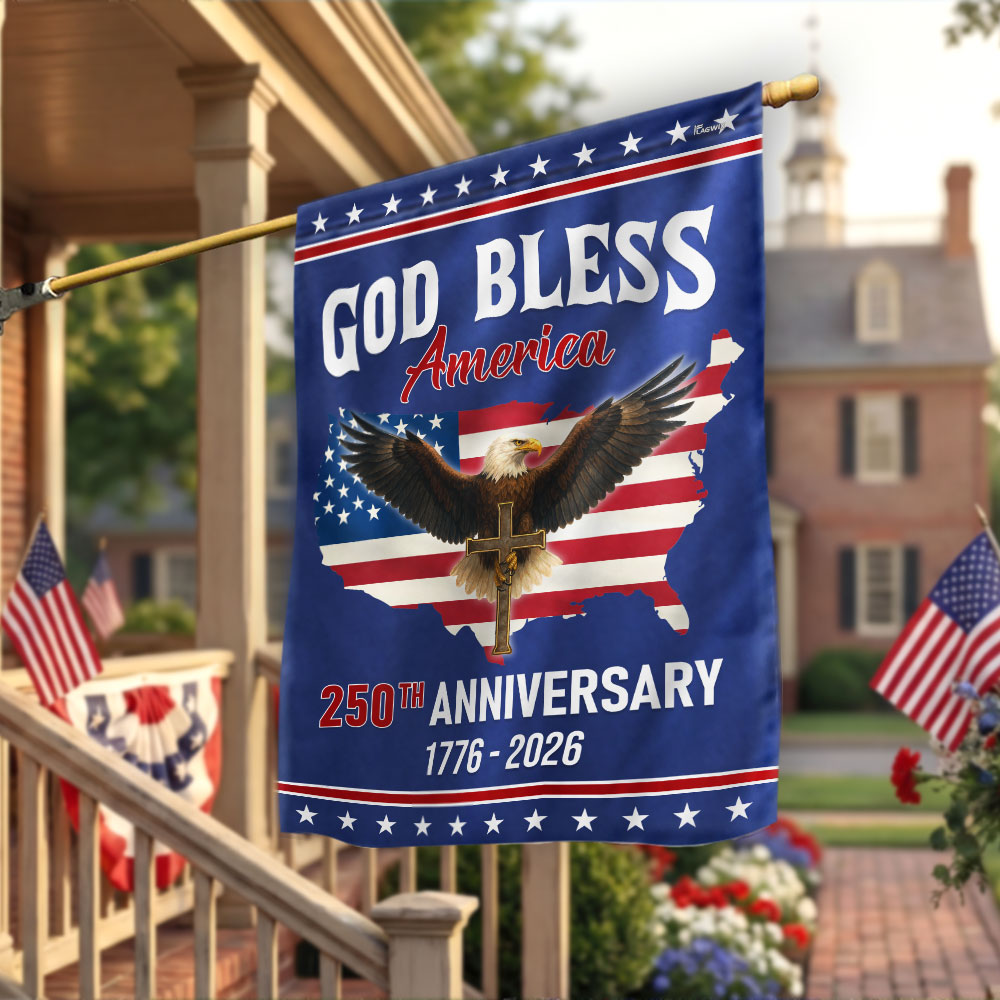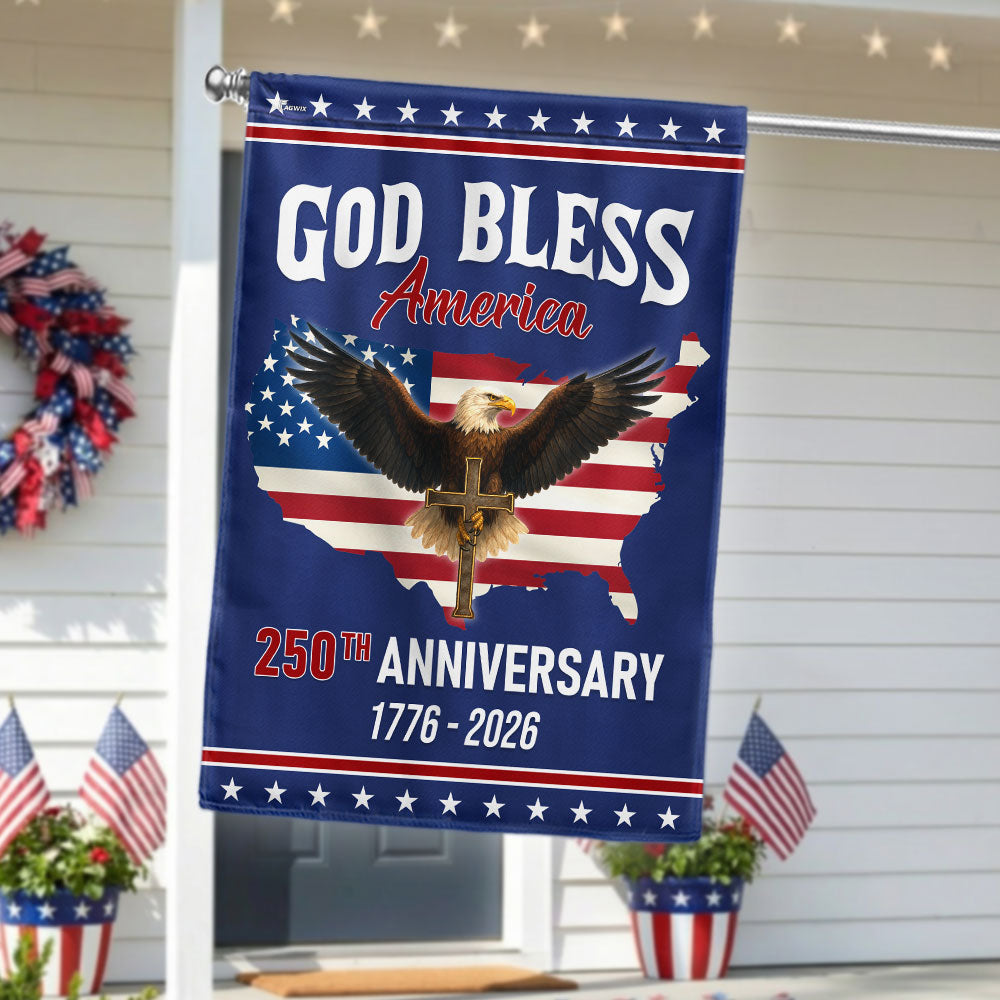 Patriotic Christ 250th Anniversary American Flag, God Bless 1776–2026 Flag Are you looking for something to decorate your home more outstandingly or make a gift for your beloved? Our custom printed flags would be a wonderful choice for a home-decor accessory or a perfect gift to give your families and friends.
