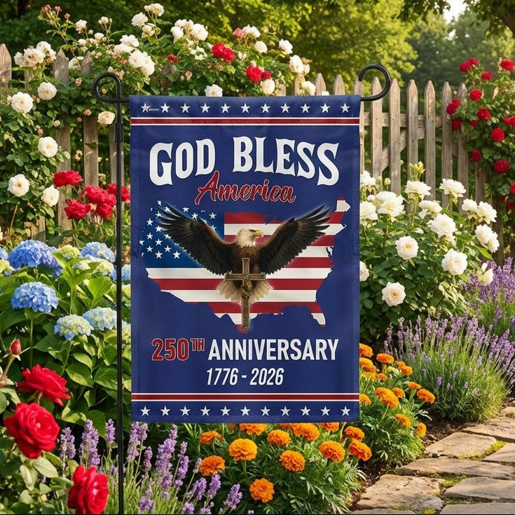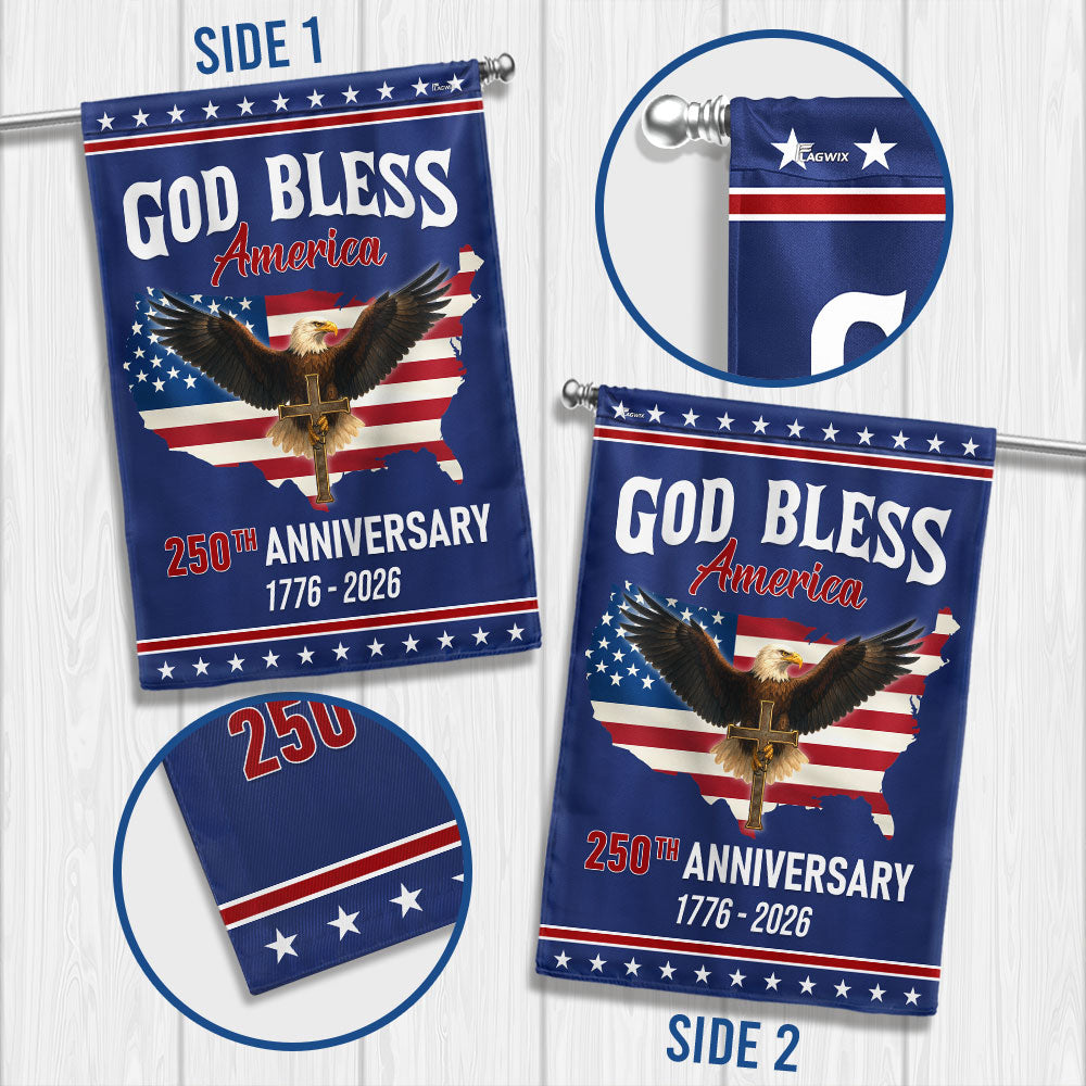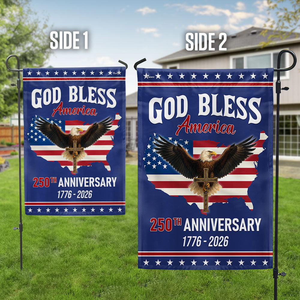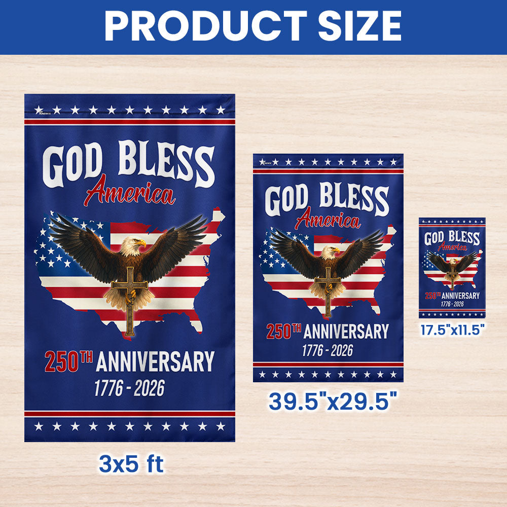 Patriotic Christ 250th Anniversary American Flag, God Bless 1776–2026 Flag Are you looking for something to decorate your home more outstandingly or make a gift for your beloved? Our custom printed flags would be a wonderful choice for a home-decor accessory or a perfect gift to give your families and friends.