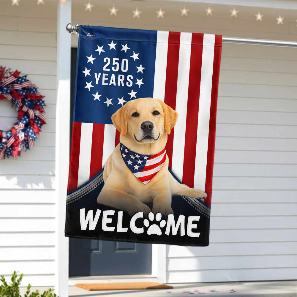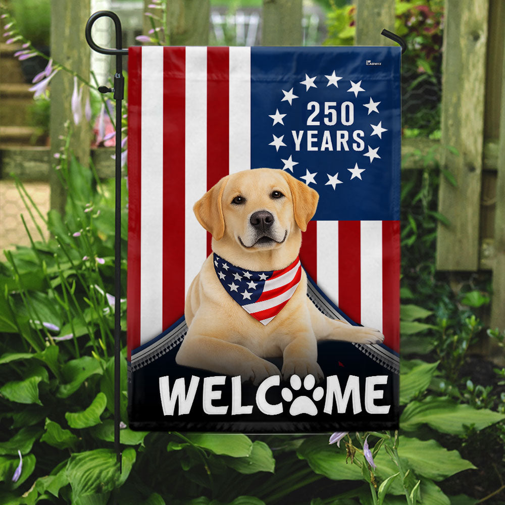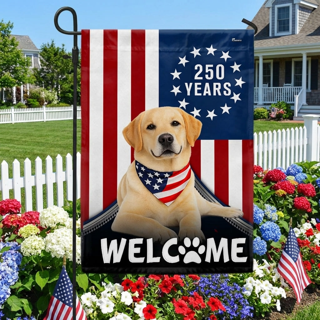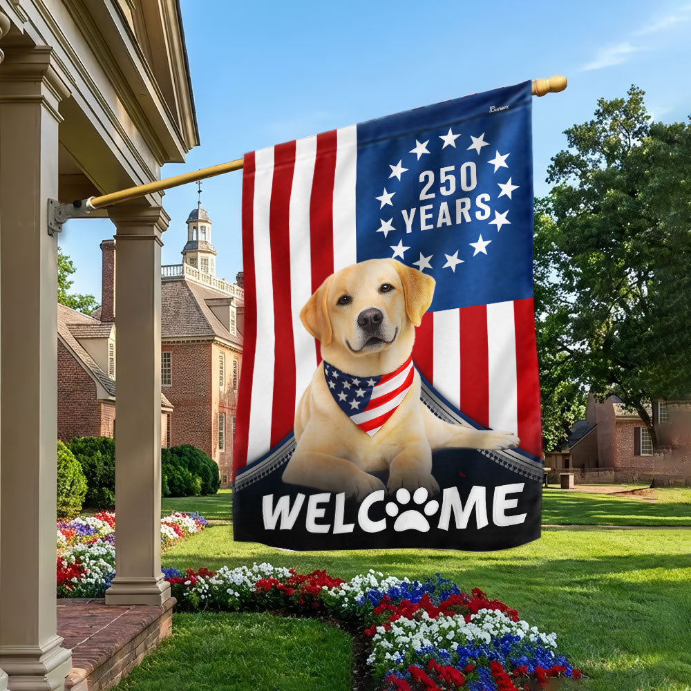 Patriotic Welcome Dog Garden Flag, 250 Years Labrador Retriever Flag Decor for Dog Lovers Are you looking for something to decorate your home more outstandingly or make a gift for your beloved? Our custom printed flags would be a wonderful choice for a home-decor accessory or a perfect gift to give your families and friends.