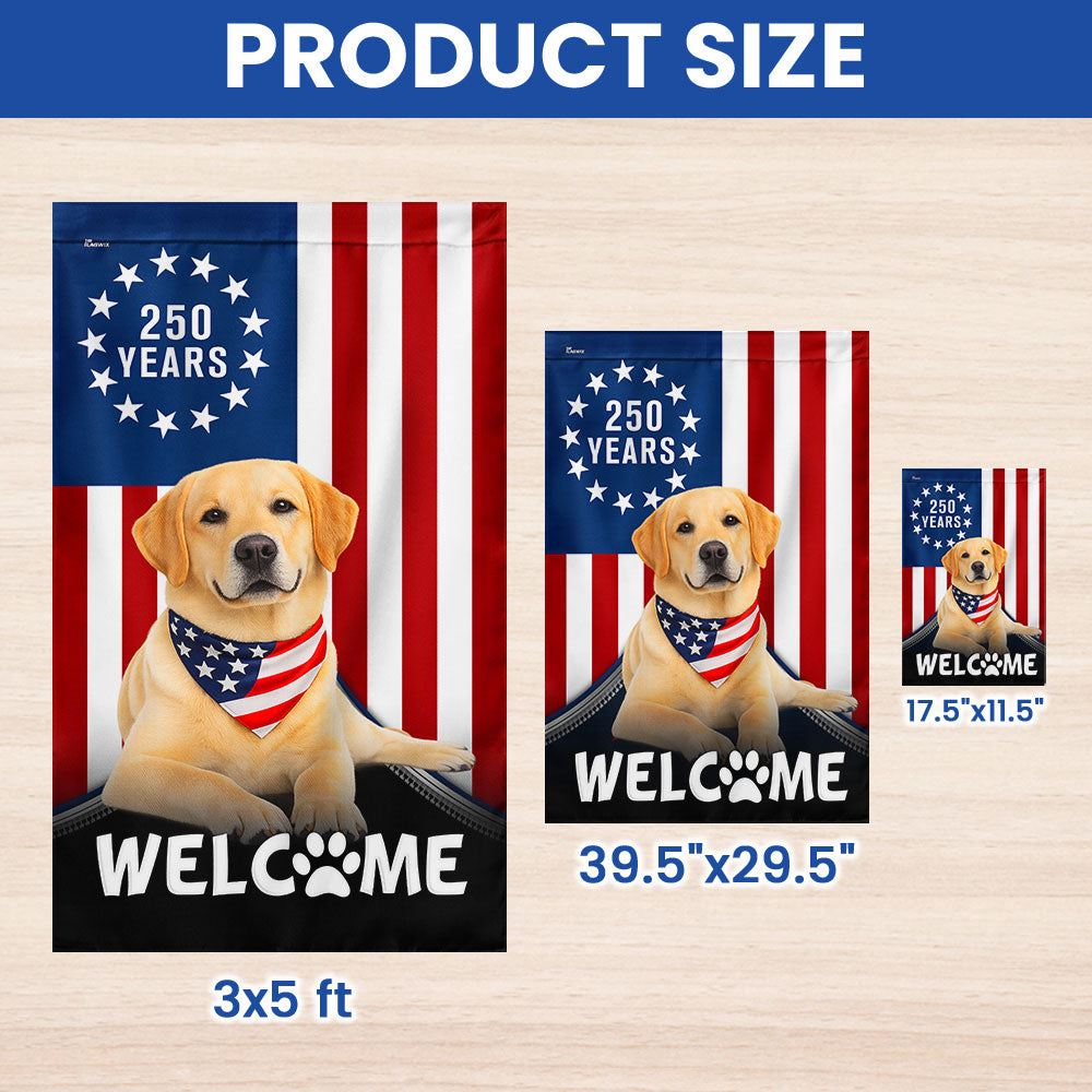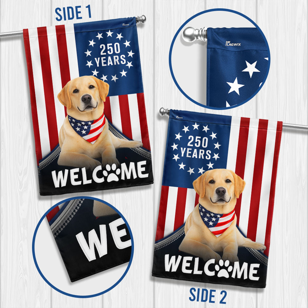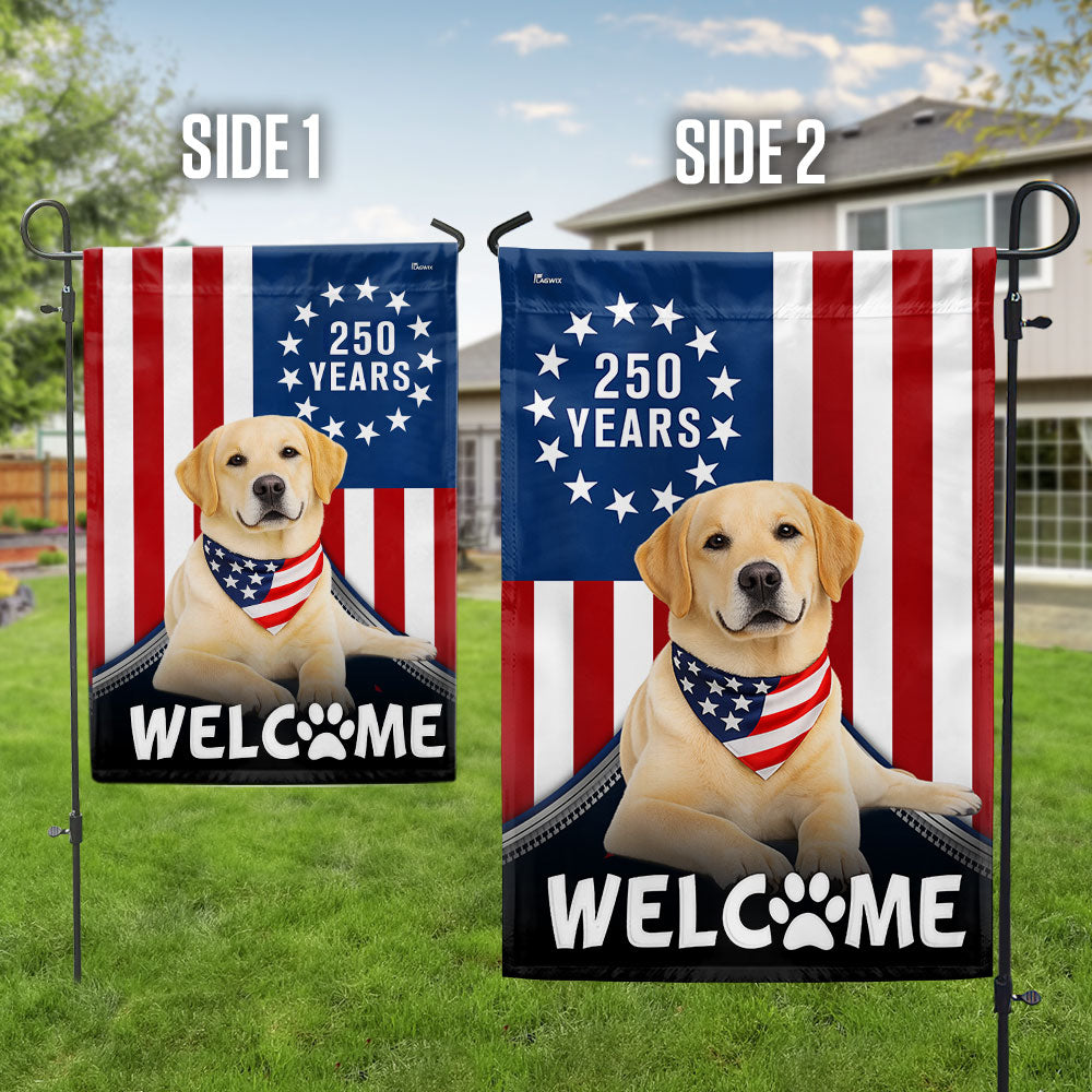 Patriotic Welcome Dog Garden Flag, 250 Years Labrador Retriever Flag Decor for Dog Lovers