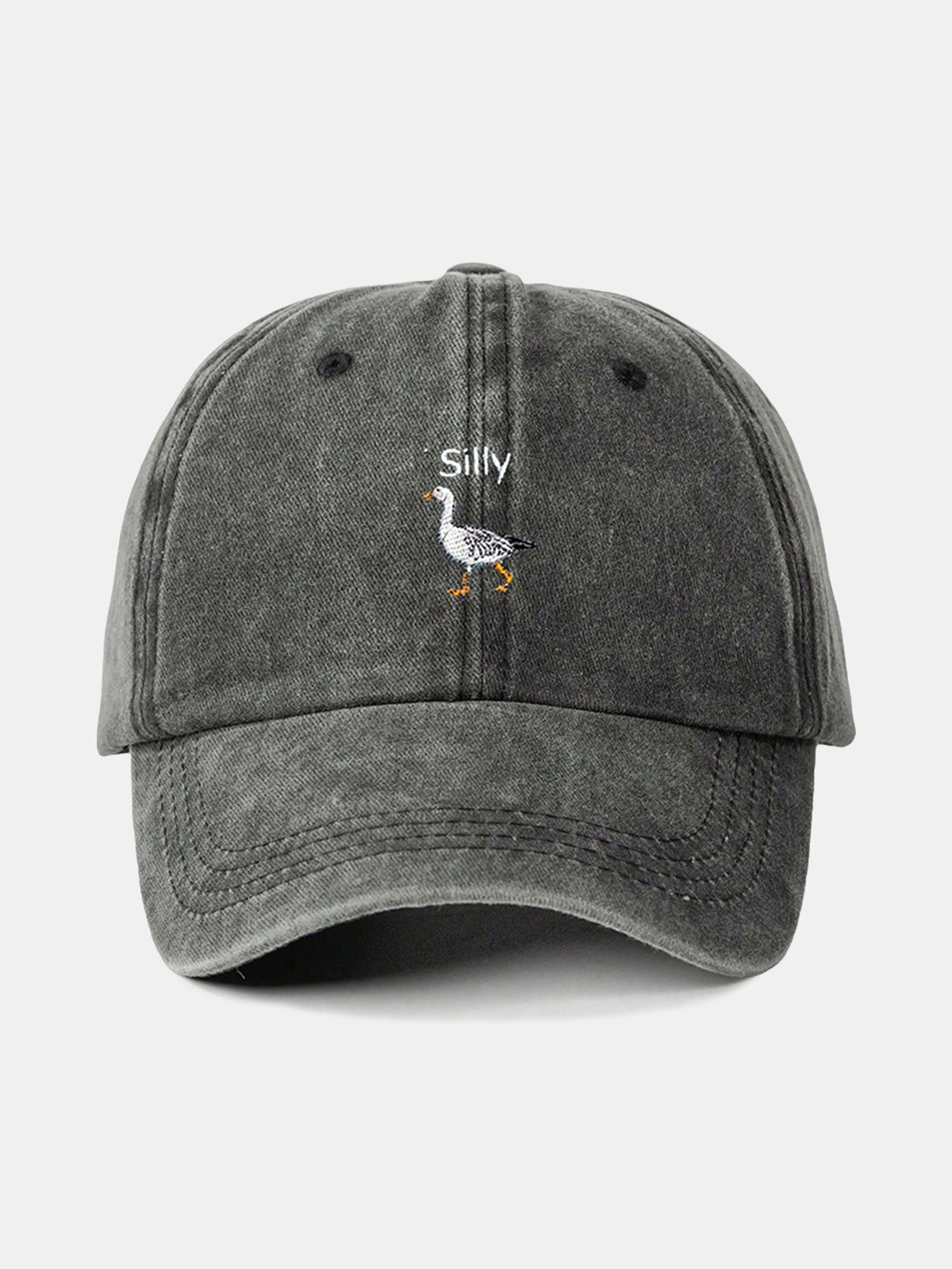 Add some personality to your outfit with this silly goose embroidered baseball cap. Designed with a washed finish and playful stitched details, it’s the perfect blend of laid-back charm and humor. Whether you’re running errands, meeting friends, or just showing off your fun side, this cap keeps it cool and comfy all day long.
