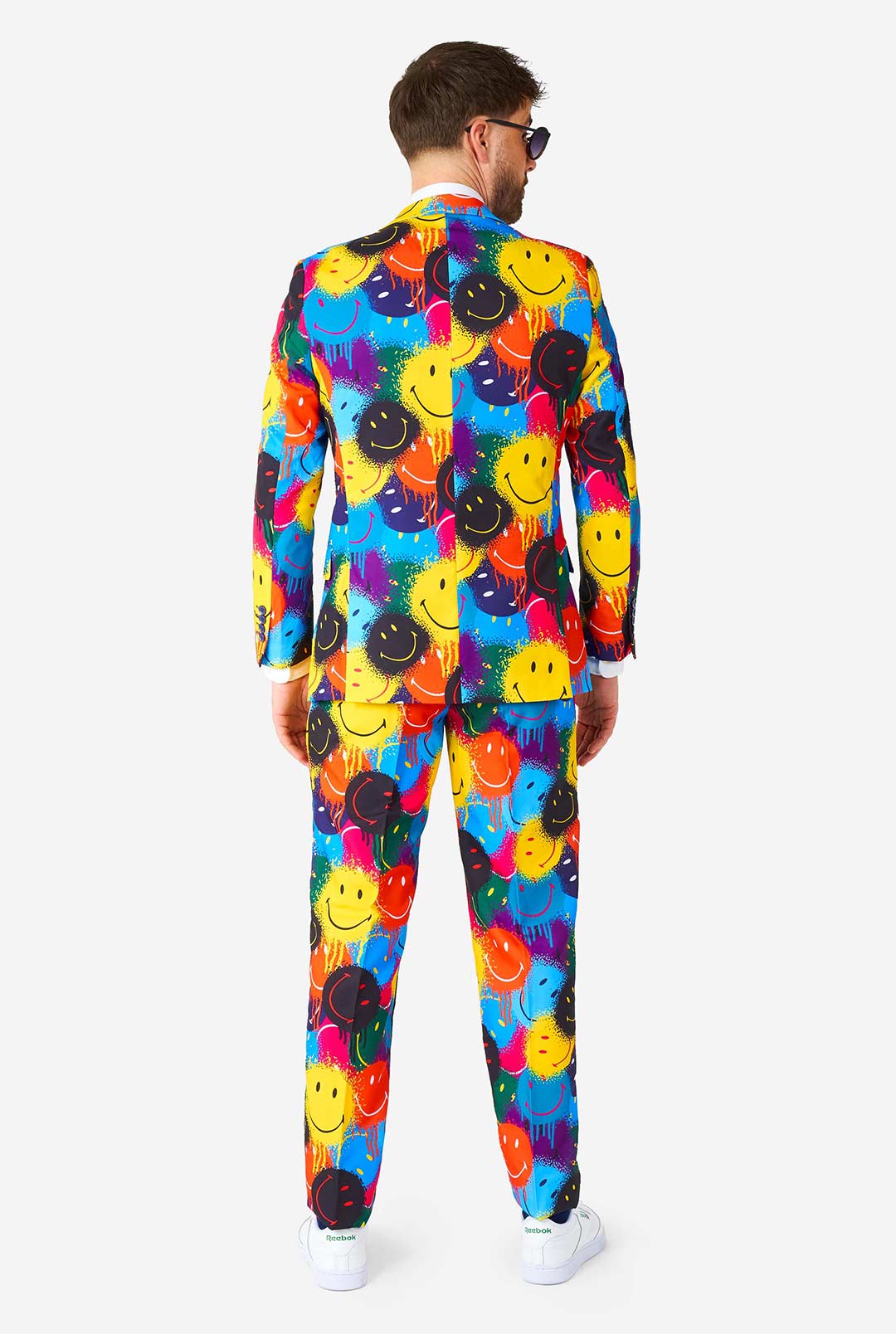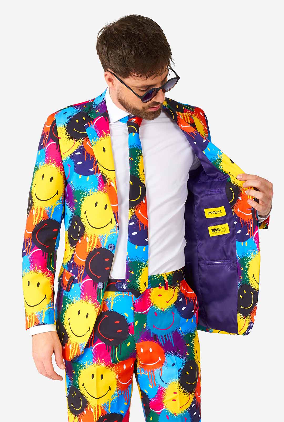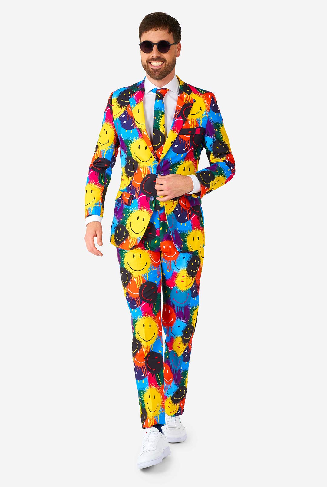 Let's not beat around the bush. The Smiley® Drip is bold, stylish, and tells a story. If you want to feel and look like a high fashion, streetwear icon, this suit is made for you. The classic Smiley® symbol shines in all it's colorful ways and will get a smile on your face, as well as all your friends. Nothing beats a happy face and this suit proves it!
