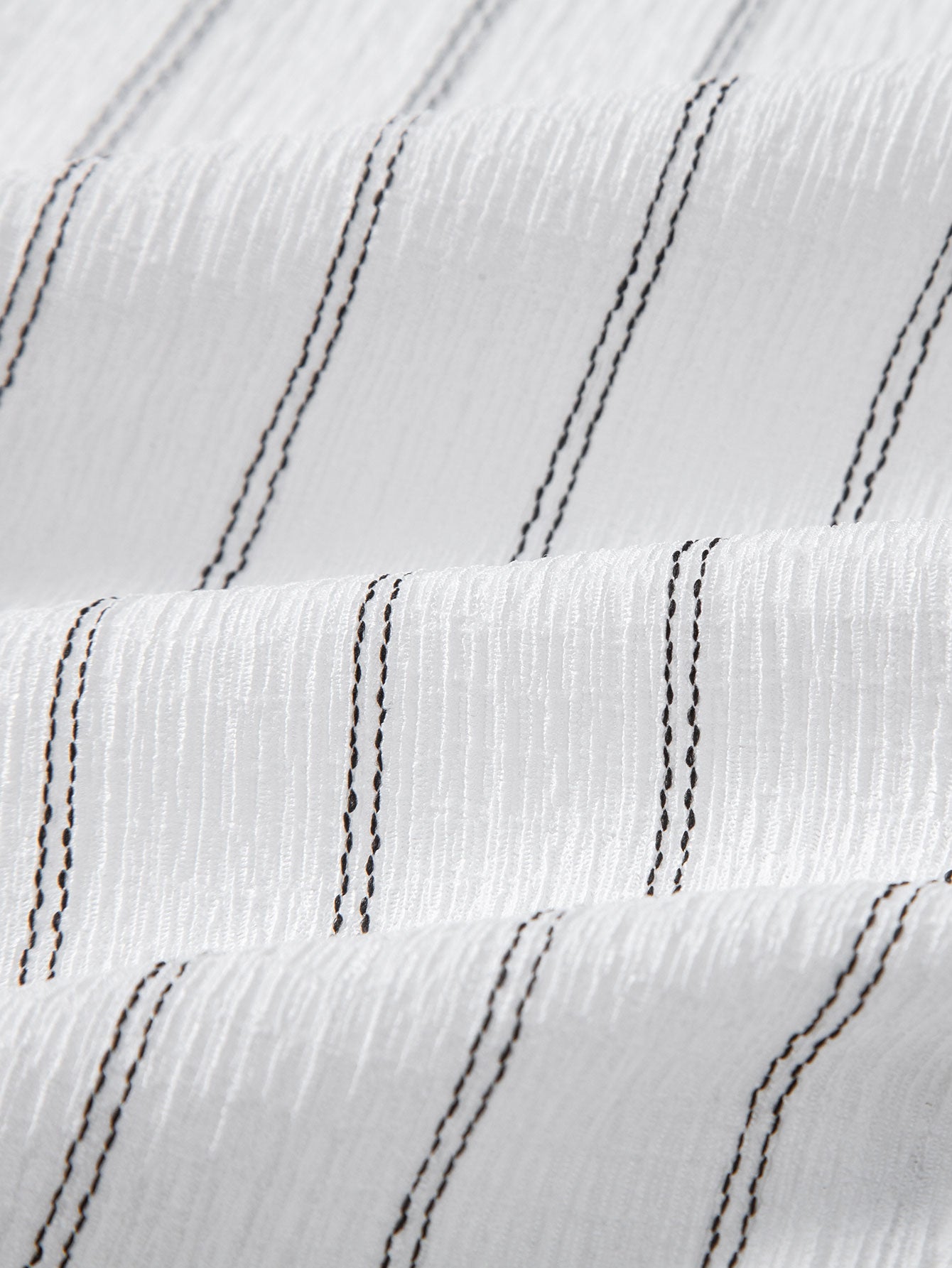 Effortlessly elevate your everyday style with this breezy and refined two-piece set. The Stripe Textured Button-Up Shirt features subtle vertical texture for a clean, modern look with understated charm. Paired with Straight-Leg Linen Pants, this set combines comfort and sophistication. The linen fabric ensures breathability and ease of movement, while the straight-leg cut keeps things polished and versatile.