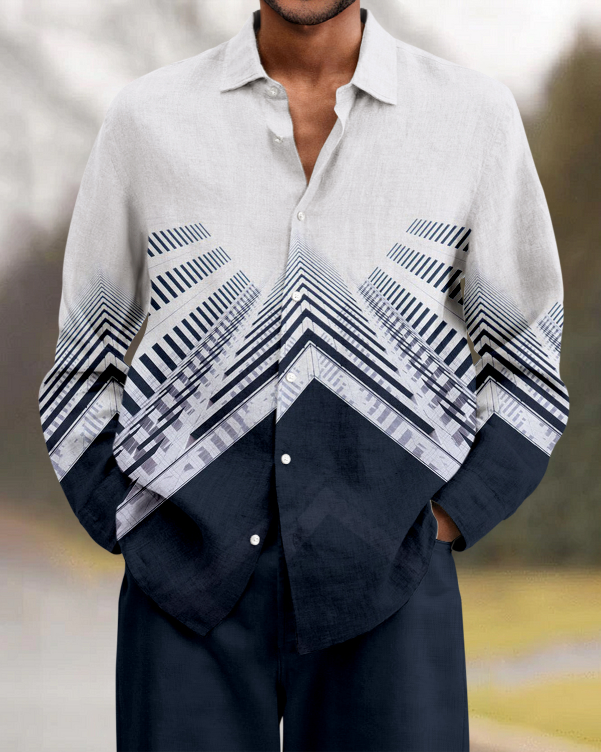 Suitmens Men's Geometric Building Long Sleeve Walking Suits-0098