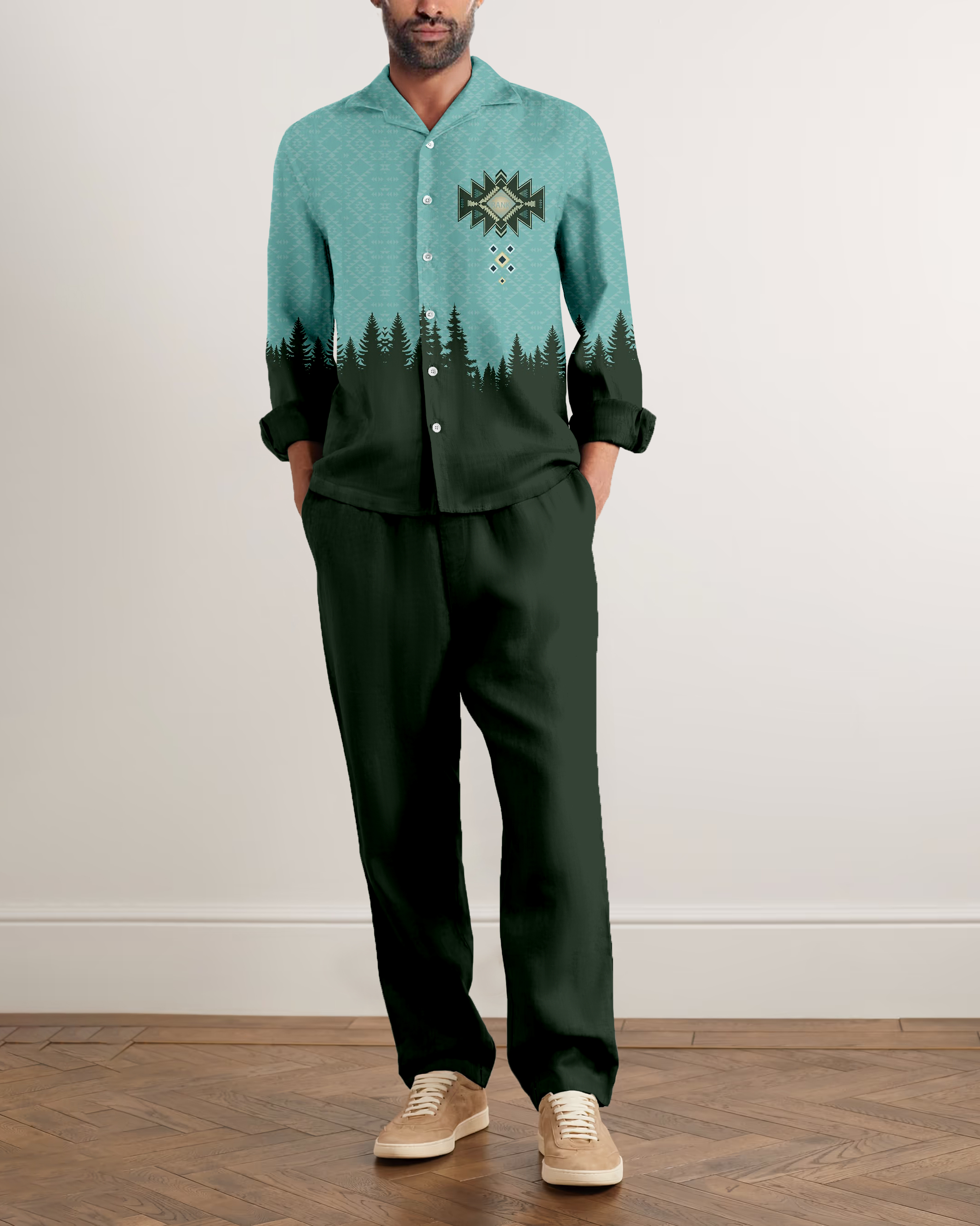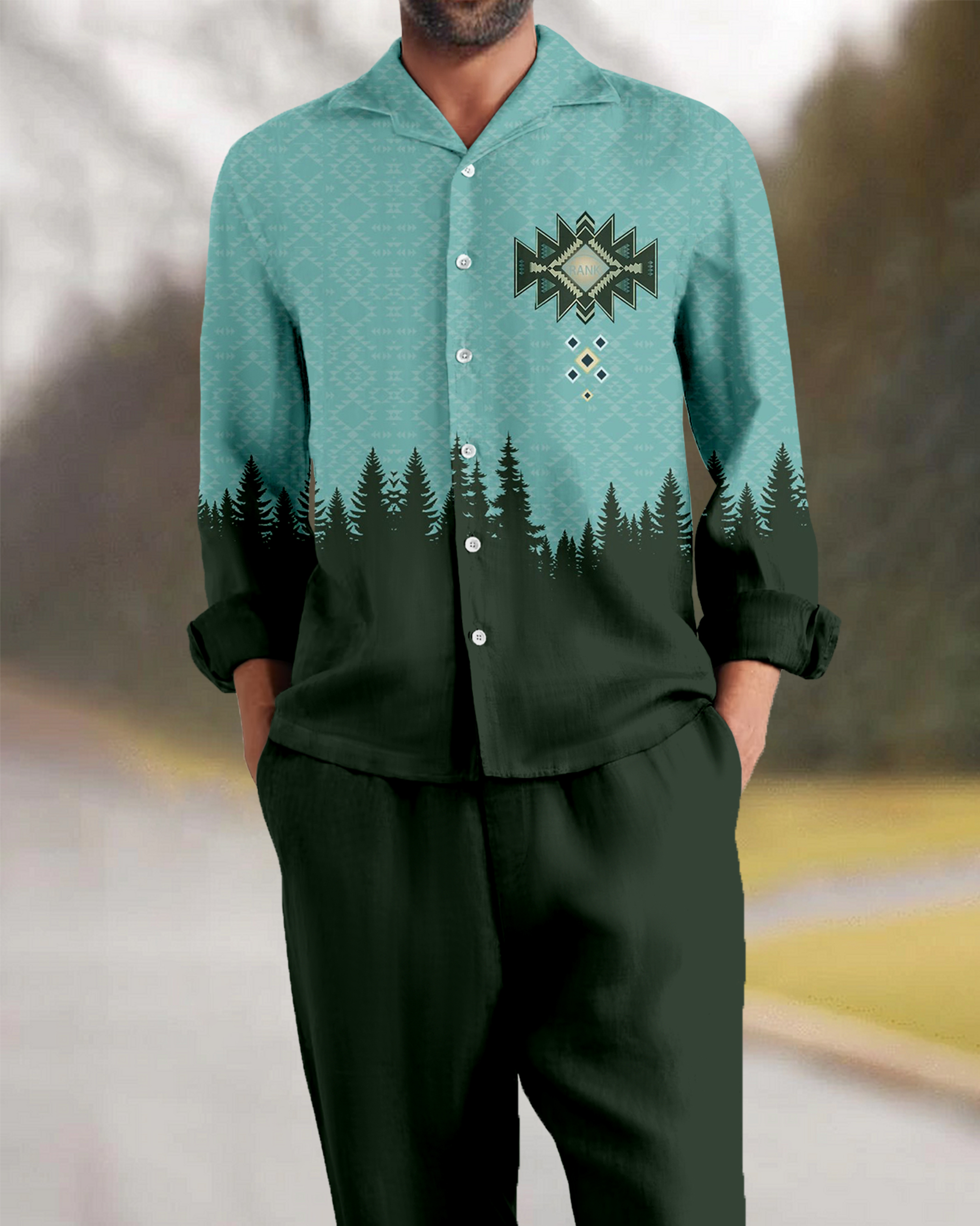 Suitmens Men's Retro Forest Mountain Long Sleeve Walking Suits-0126