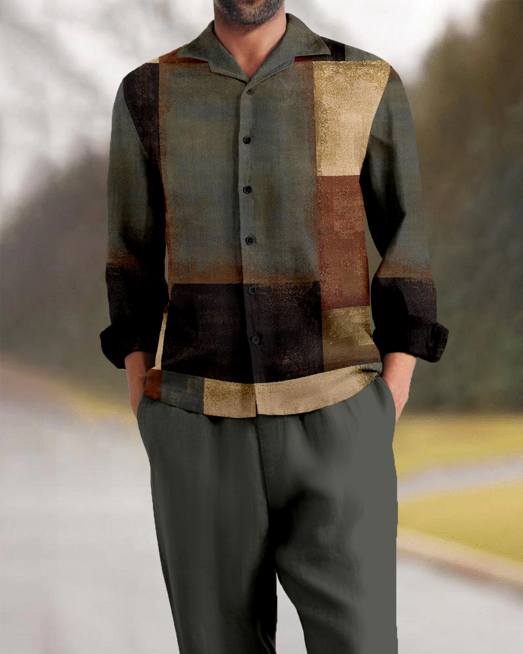 Suitmens Men's Retro Geometry Long Sleeve Walking Suits-0136