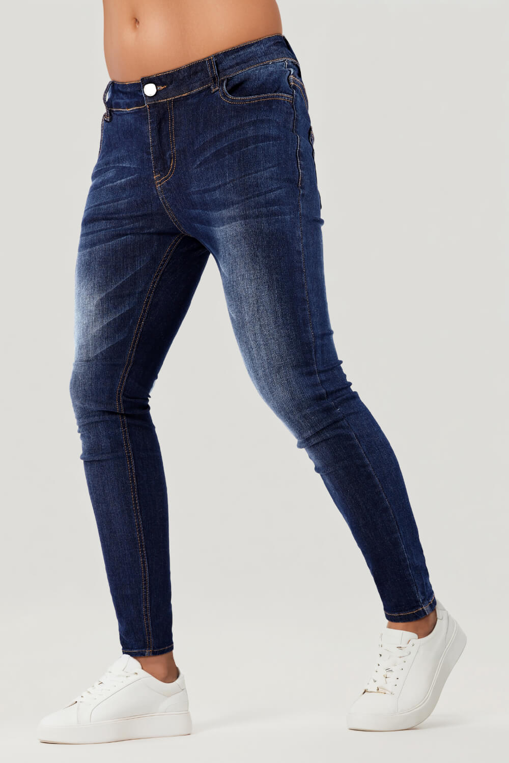Super comfortable and high-stretch denim jeans designed with a form-flattering, muscular thighs fit. our super stretch skinny jeans fit your lower body to wear all day long and can be paired with our popular basic tops.