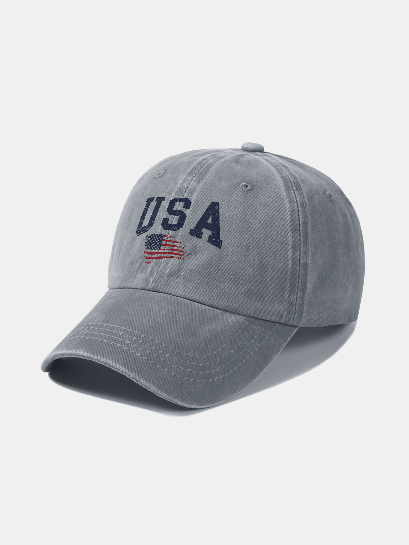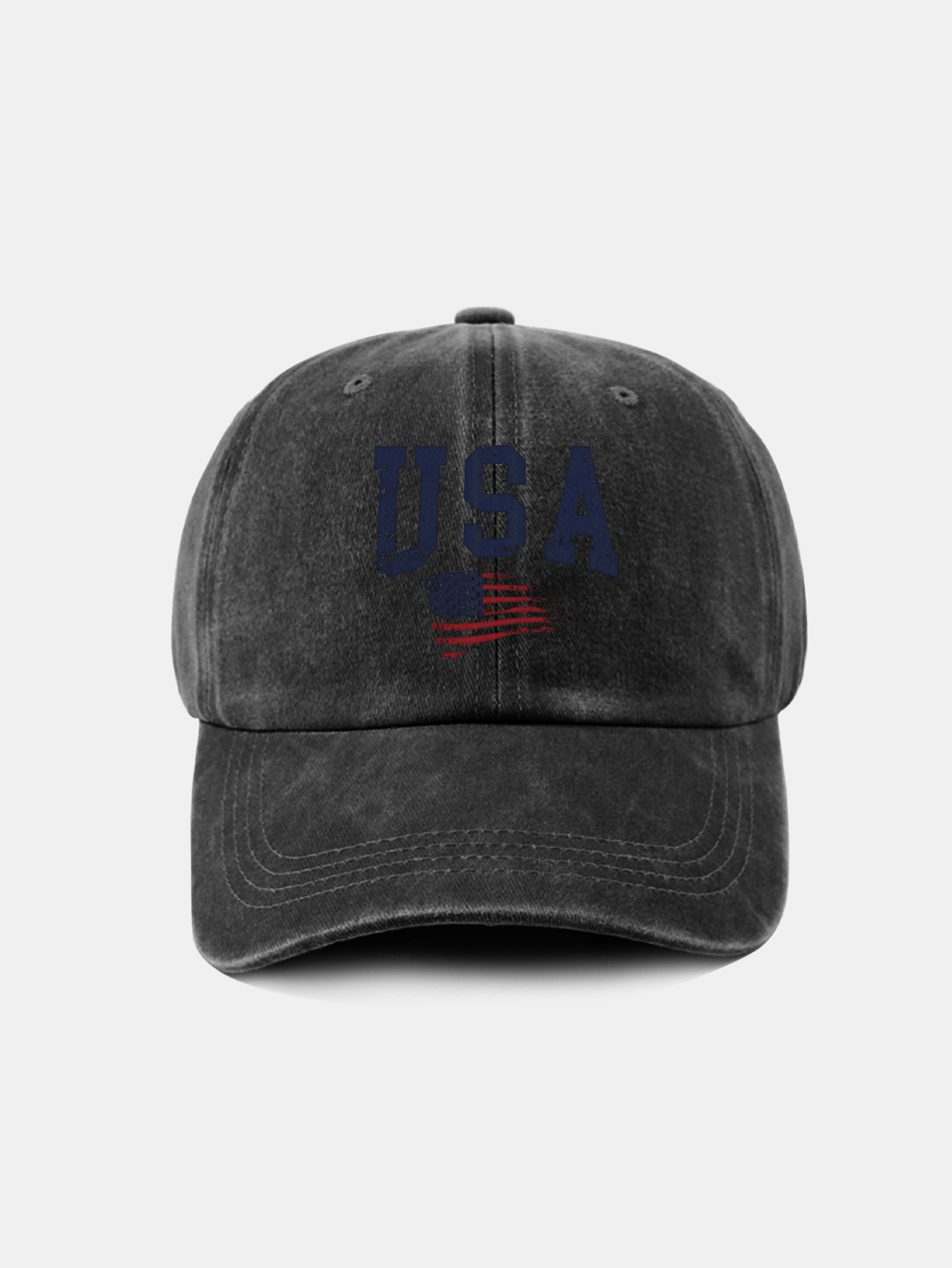 Show your stars and stripes in style with this timeless USA flag print washed baseball cap. Featuring a vintage-inspired finish and bold American flag detail, it’s the perfect cap for sunny days, national pride, and all things red, white, and blue.
