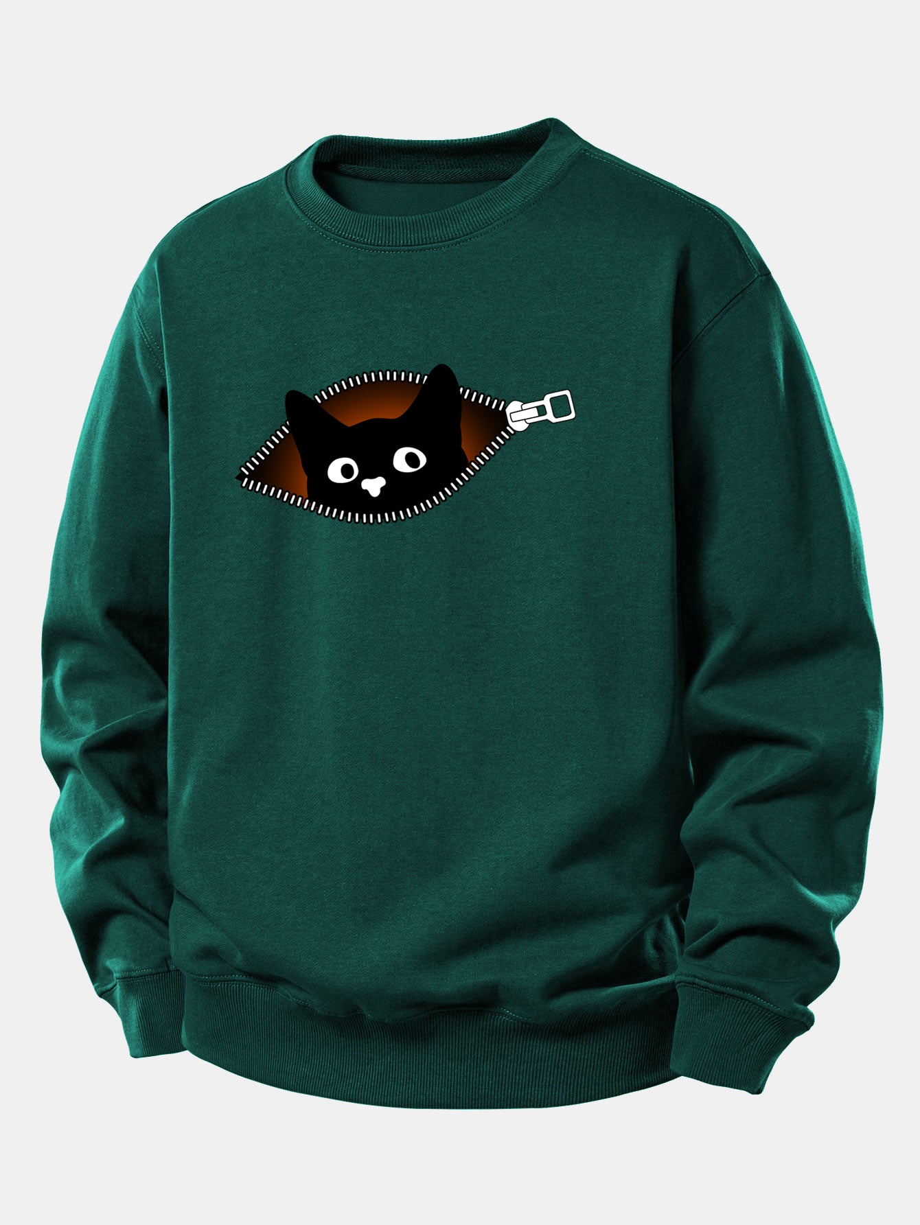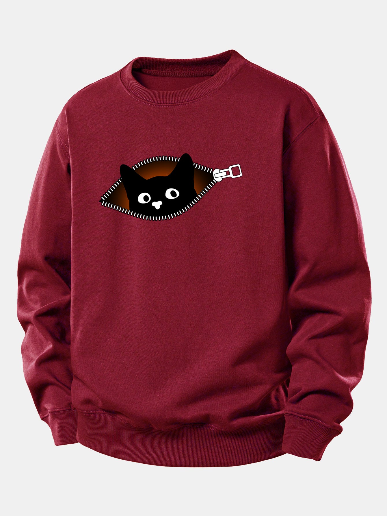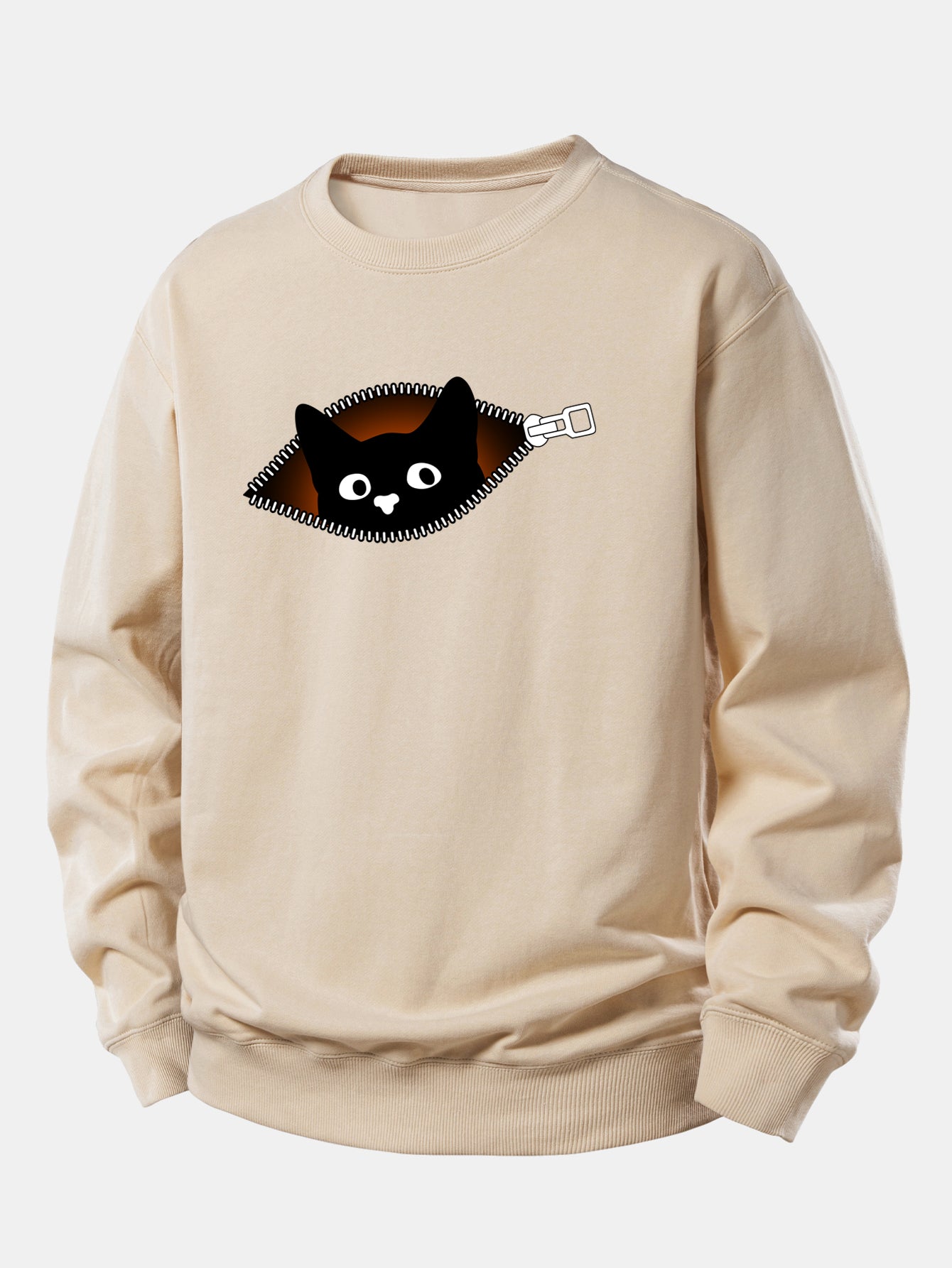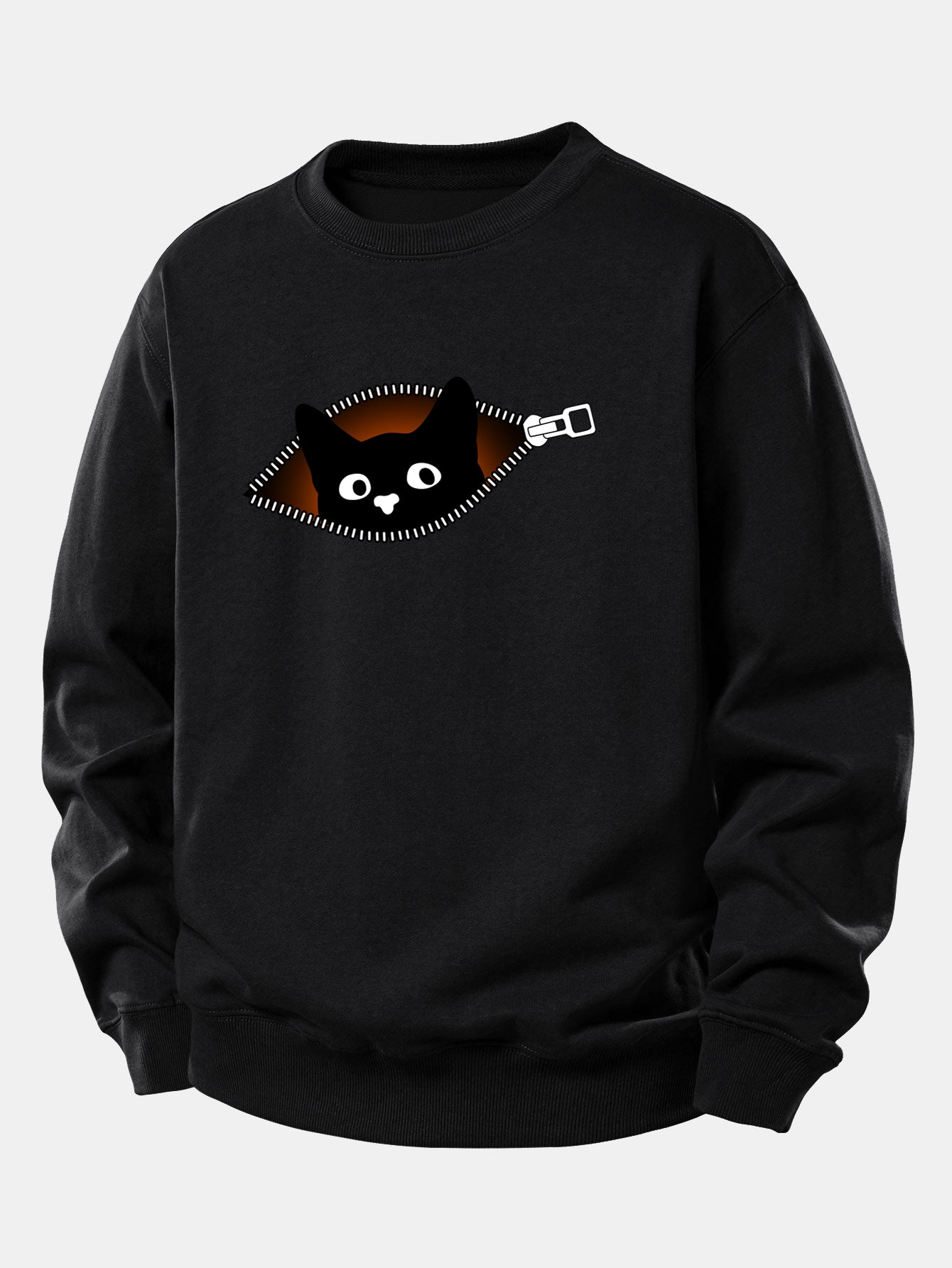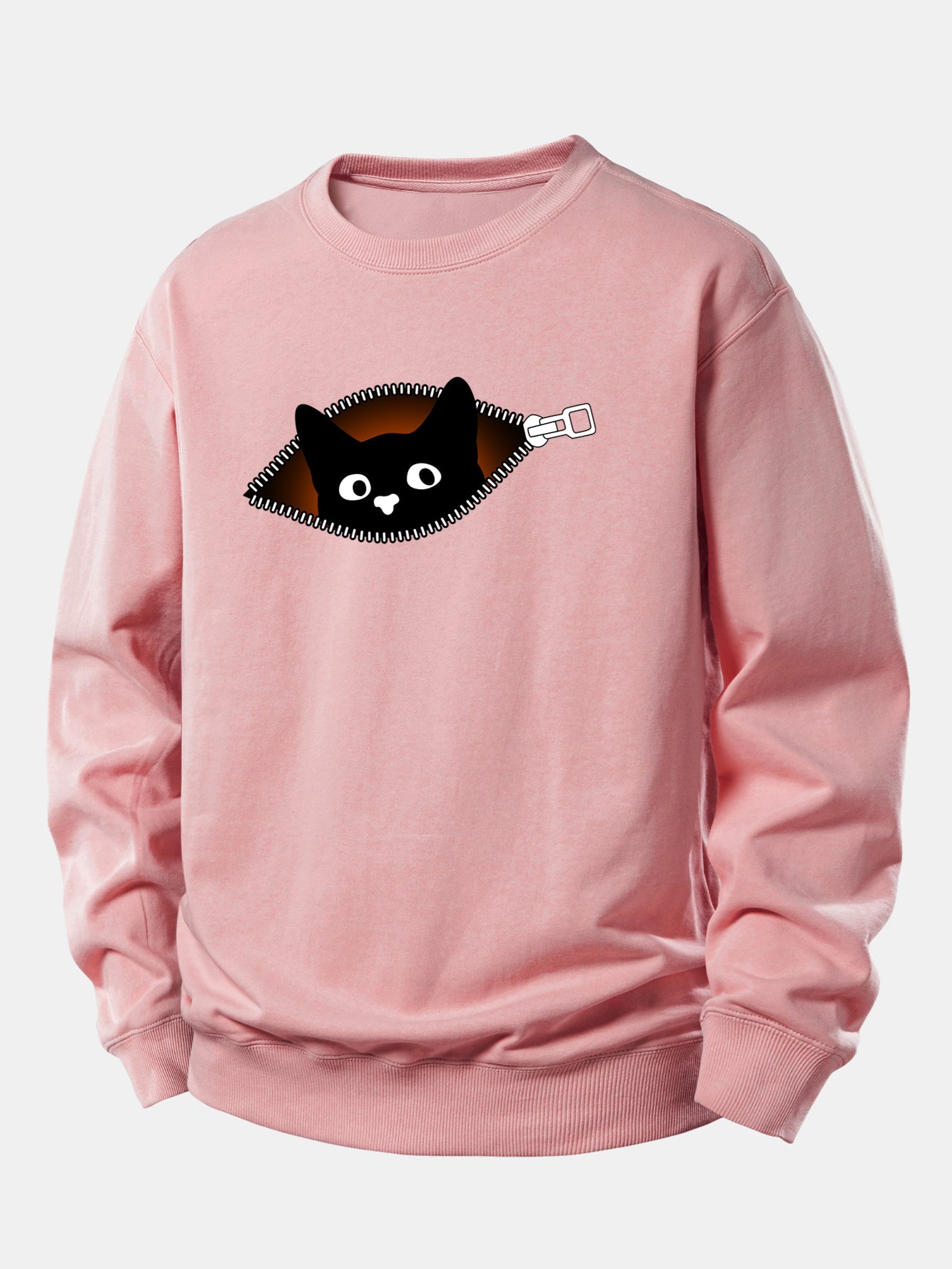 Featuring a cute black cat graphic and a front zipper detail, this sweatshirt combines casual comfort with trendy streetwear flair. Made from soft, breathable fabric, it offers a relaxed fit that’s perfect for layering during cooler seasons. Ideal for cat lovers and anyone who loves unique, cozy fashion.