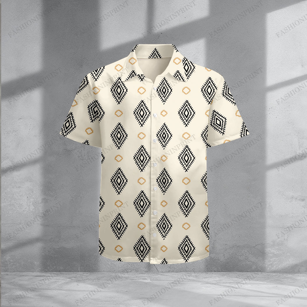 Men's Casual Apricot & Black Color Matching Ethnic Style Print Short-Sleeve Shirt