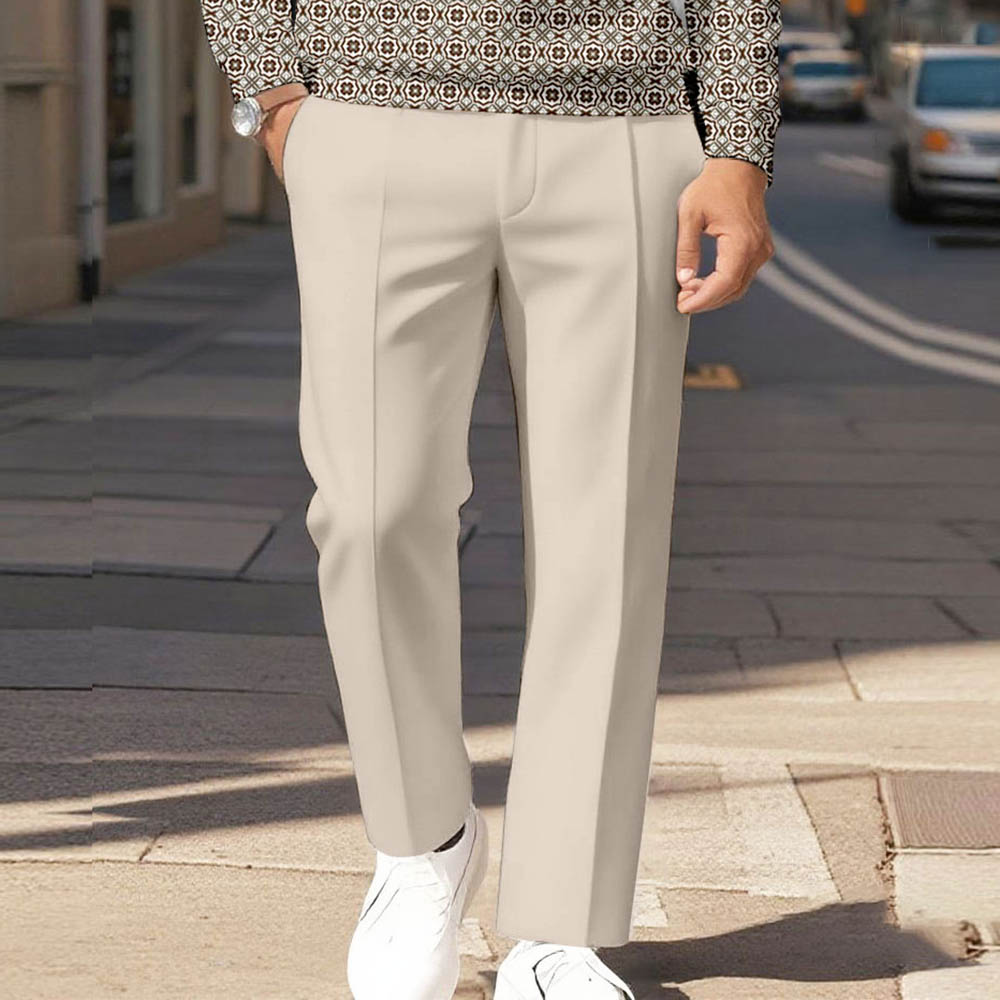 Men's Casual Color Matching Vintage Geometric Printed Polo-Collar Zipper Long Sleeved Trousers Two-Piece Set