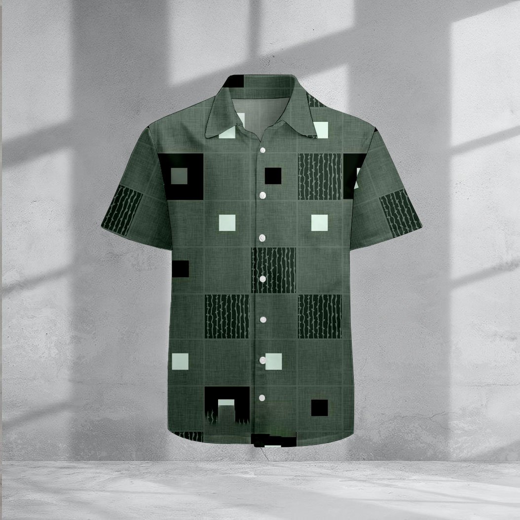 Men's Casual Lapel Dark Green Geometric Printed Short Sleeve Shirts