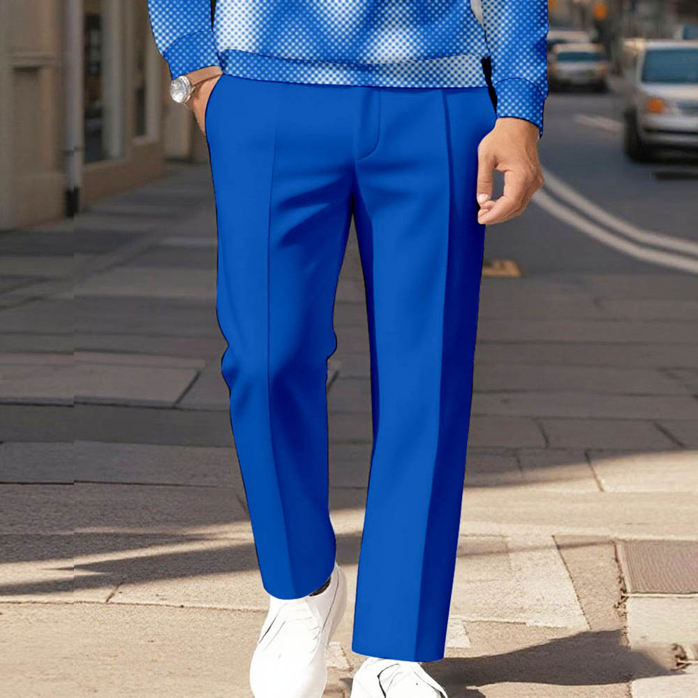 Men's Casual Royal Blue Color Matching Gradient Printed Polo-Collar Zipper Long Sleeved Trousers Two-Piece Set