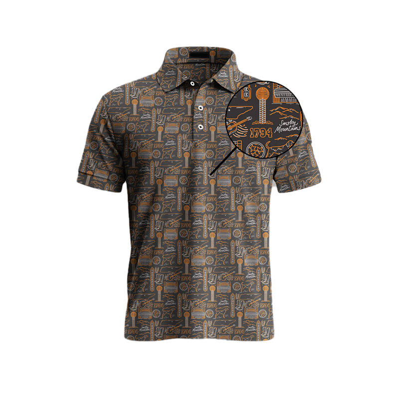Men's Dark Gray Printed Short Sleeve Polo Shirt