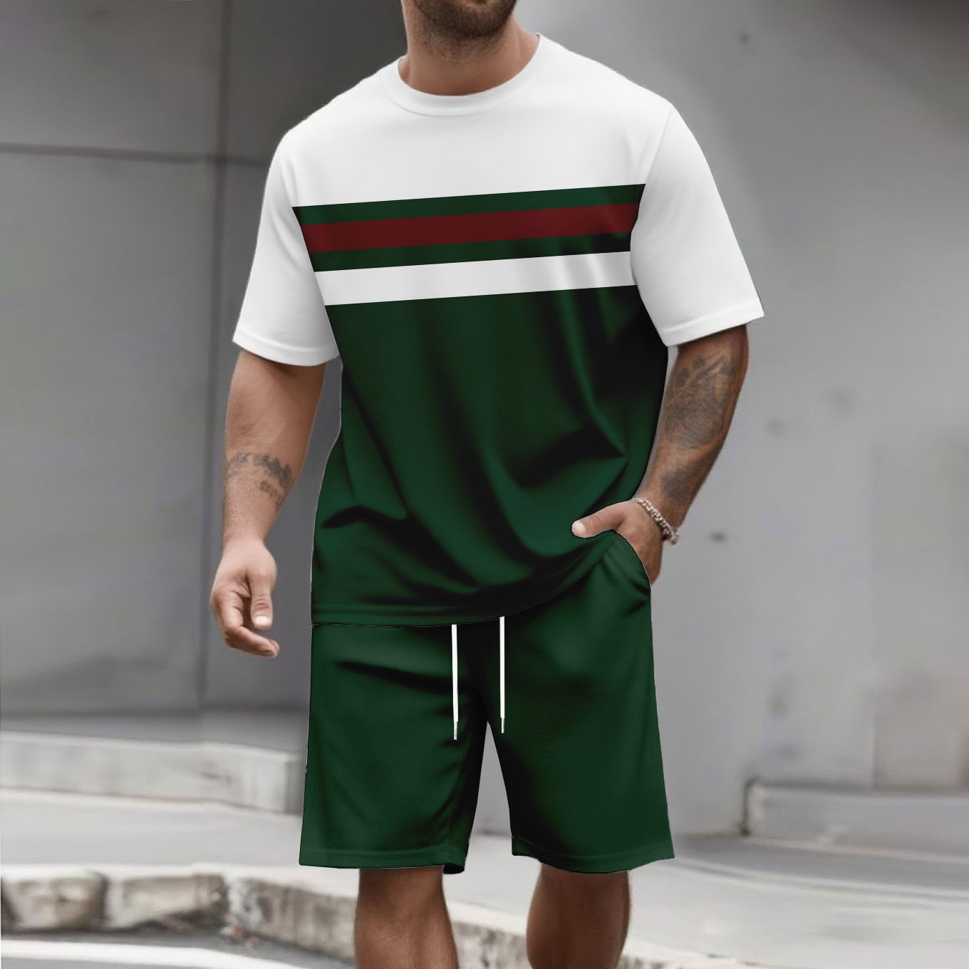 Men's Fashion Casual Color Matching Printed Short-Sleeved Two-Piece Set